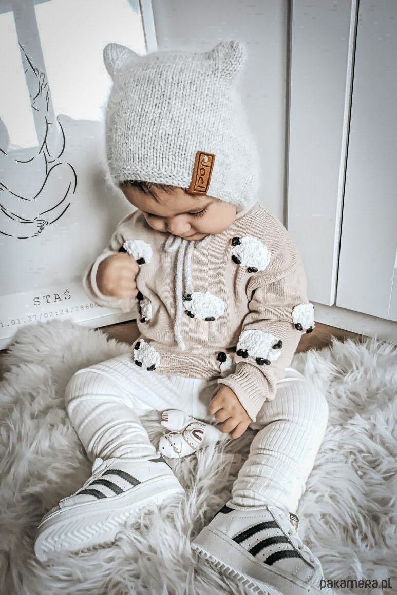 chłopczyk 1 rok ubraną ma czapkę w rozmiarze 48cm