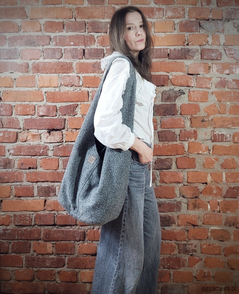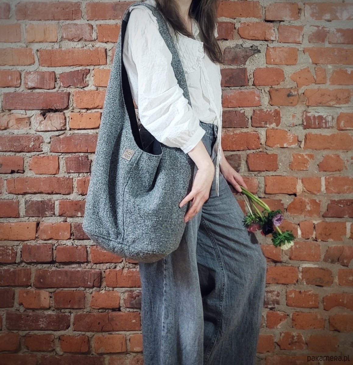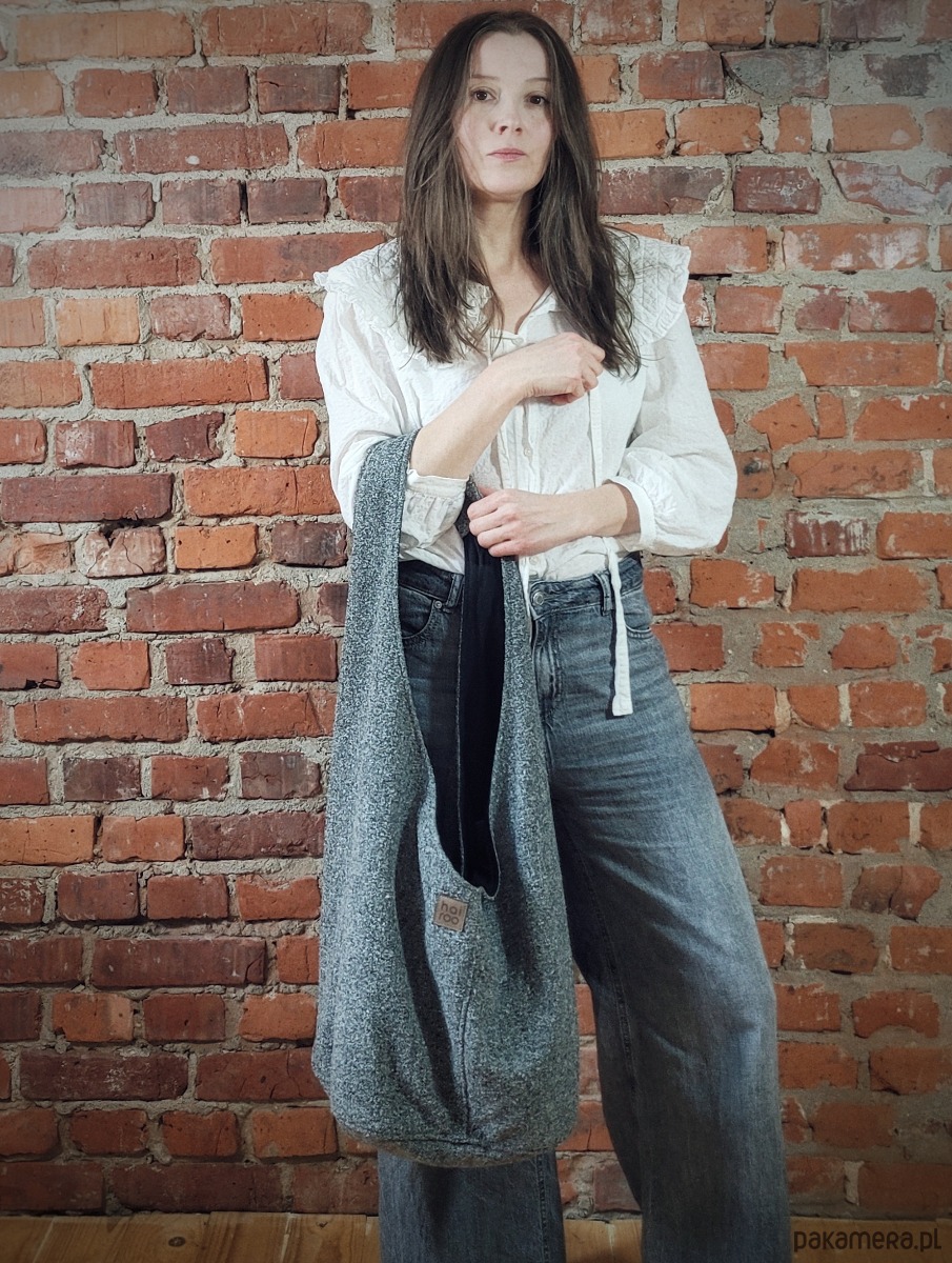Szara Boogi bag to torba w stylu boho z wygodnym szerokim paskiem, wykończona czarną, bawełnianą podszewką. Jest to bardzo pakowne i wygodne w noszeniu hobo zapinane na zamek. W środku znajdują się dwie duże kieszenie na zamek oraz pasek / smyczka na klucze. Wykonana z pięknej melanżowej tkaniny szenilowej, 100 % z recyklingu. Tkanina jest bezpieczna nawet dla dzieci i niemowląt.