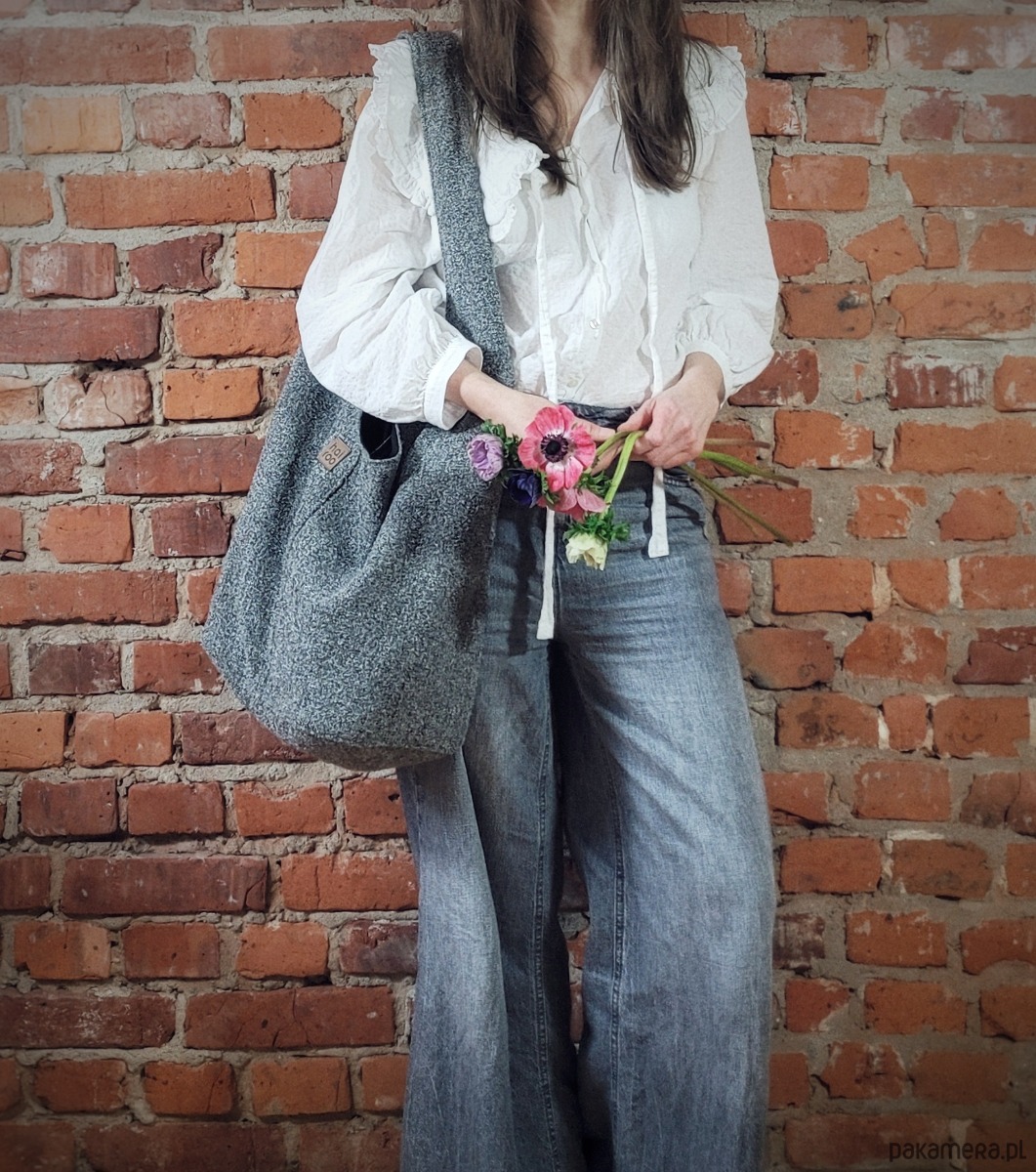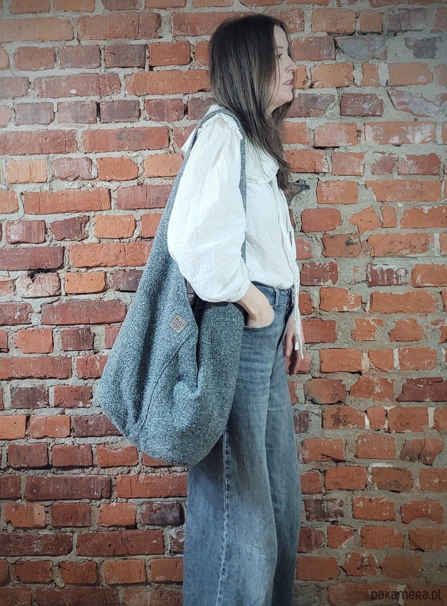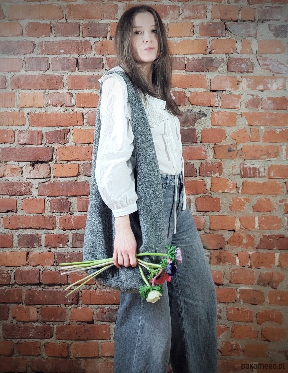 Szara Boogi bag to torba w stylu boho z wygodnym szerokim paskiem, wykończona czarną, bawełnianą podszewką. Jest to bardzo pakowne i wygodne w noszeniu hobo zapinane na zamek. W środku znajdują się dwie duże kieszenie na zamek oraz pasek / smyczka na klucze. Wykonana z pięknej melanżowej tkaniny szenilowej, 100 % z recyklingu. Tkanina jest bezpieczna nawet dla dzieci i niemowląt.