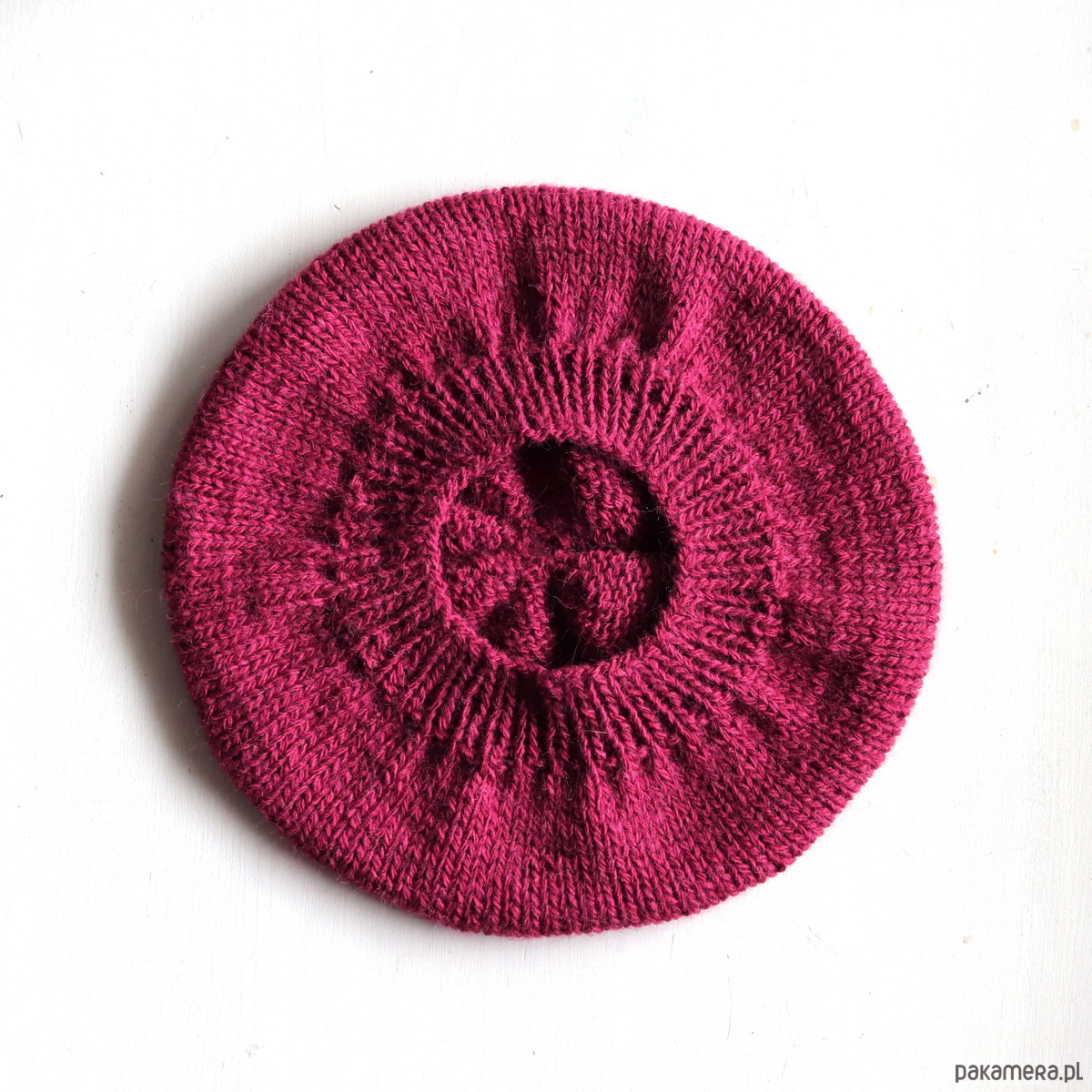 Bordo - beret w stylu francuskim – ręcznie robiony na drutach