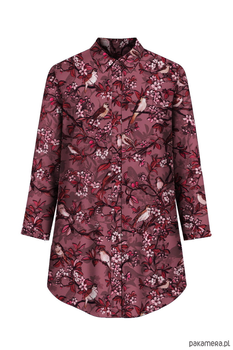 Koszula oversize w 2 rozmiarach (długość do połowy uda) uszyta z tkaniny wiskozowej w unikatowy wzór ręcznie namalowany przez Paulinę Nawrot.