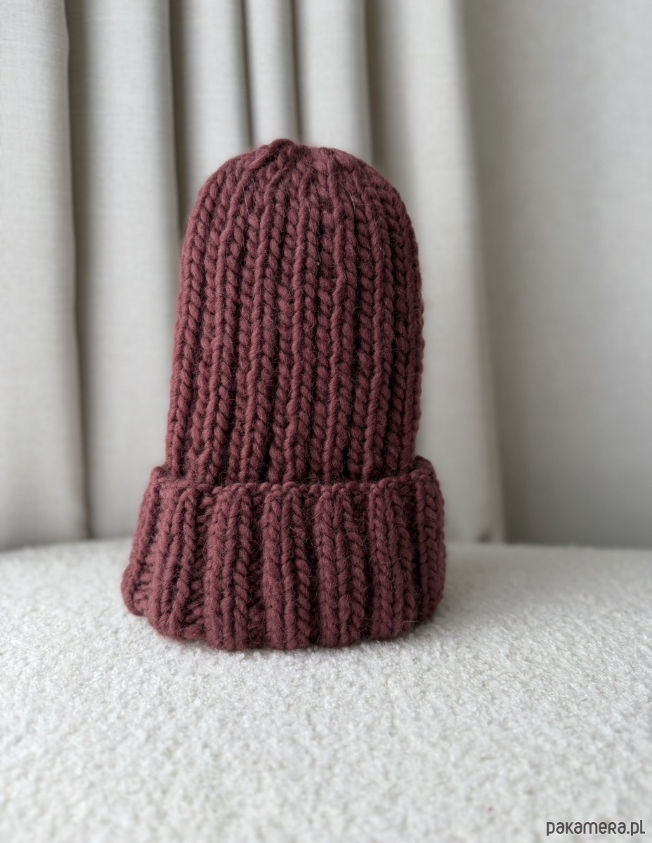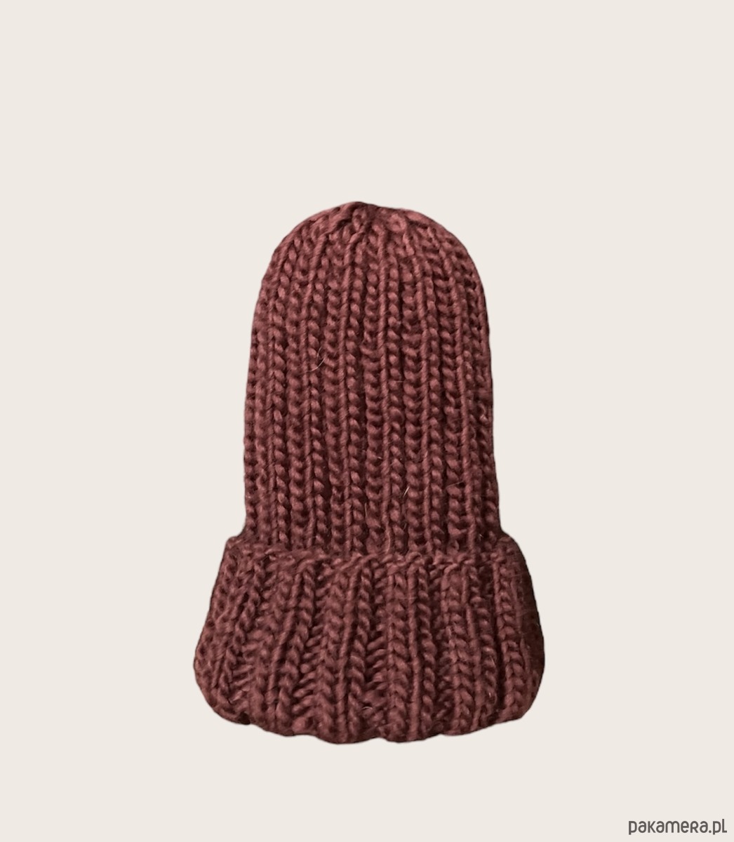 Czapka w kolorze bordowym, wykonana z naturalnej włóczki 100% wełna