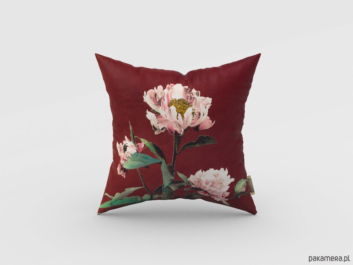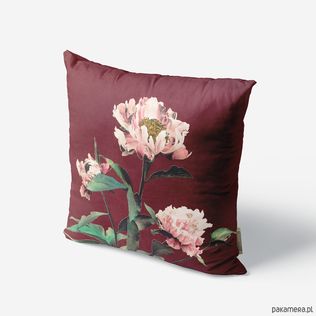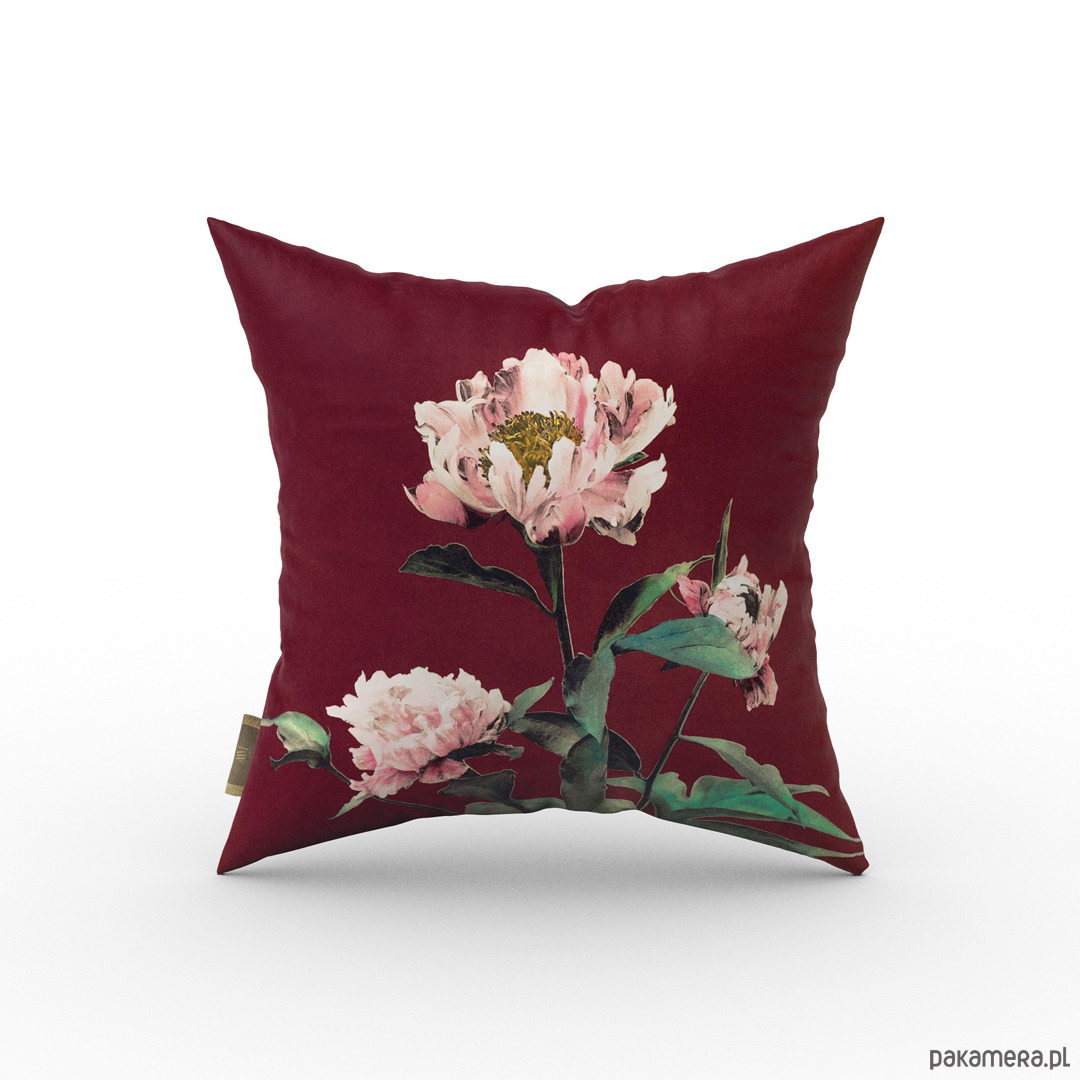 Bordowa poduszka dekoracyjna - Japońska piwonia