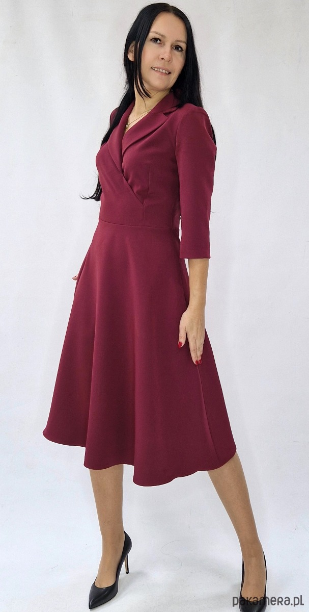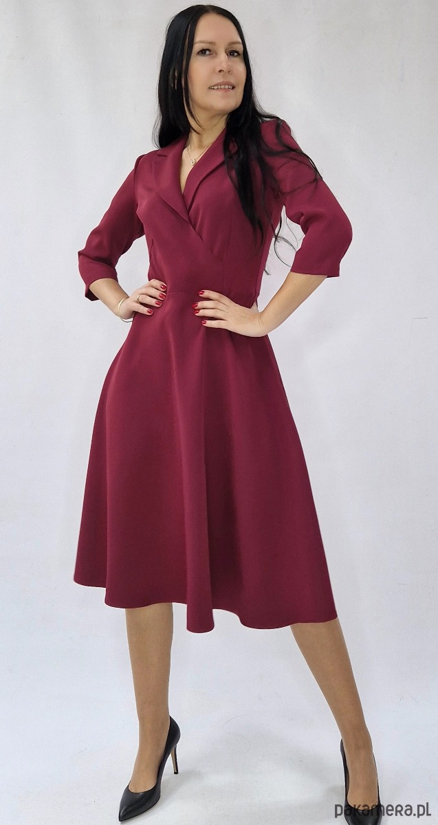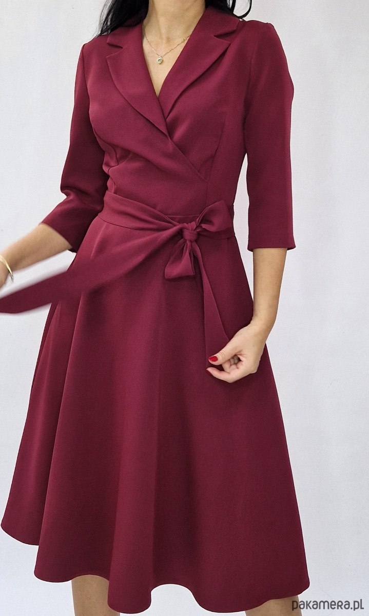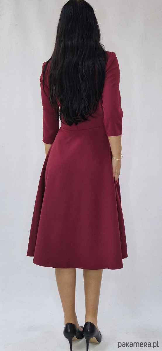Elegancka sukienka w kolorze bordowym dostępna w rozmiarach od 34 do 54 .