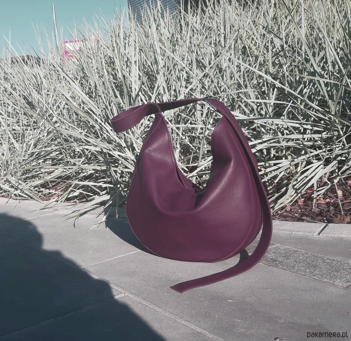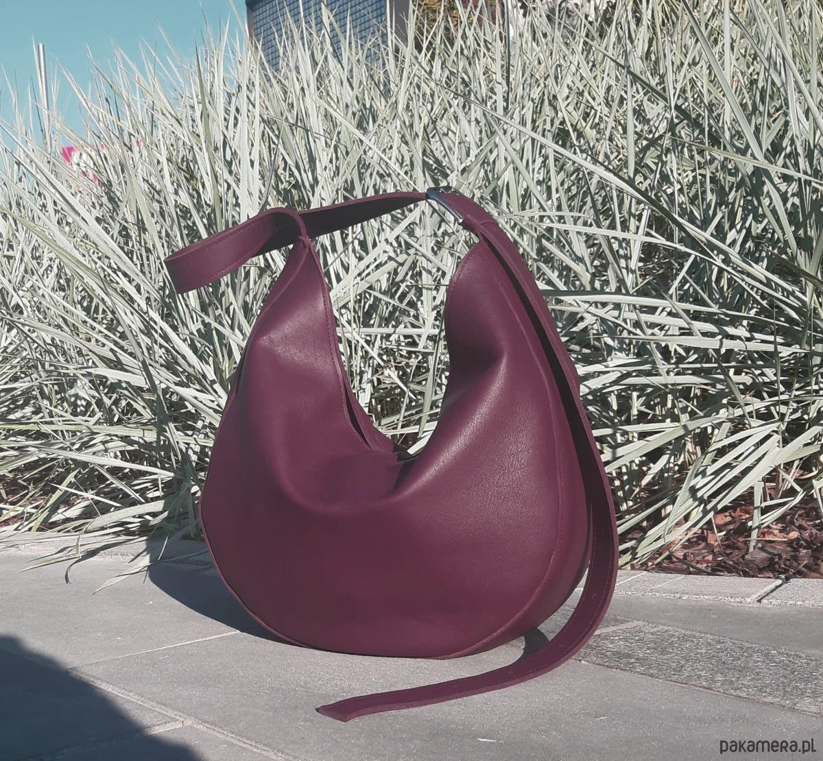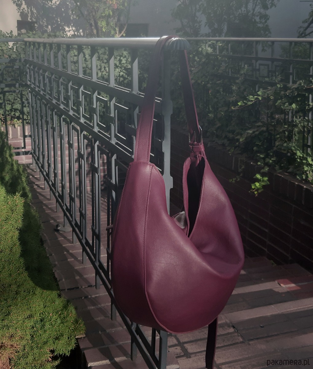 Miękka zaokrąglona torebka. Do noszenia na długim regulowanym klamerką pasku. Pasek szer. 3 cm. Pasek dł. max. ok. 115 cm. Klamerka w kolorze srebrnym.