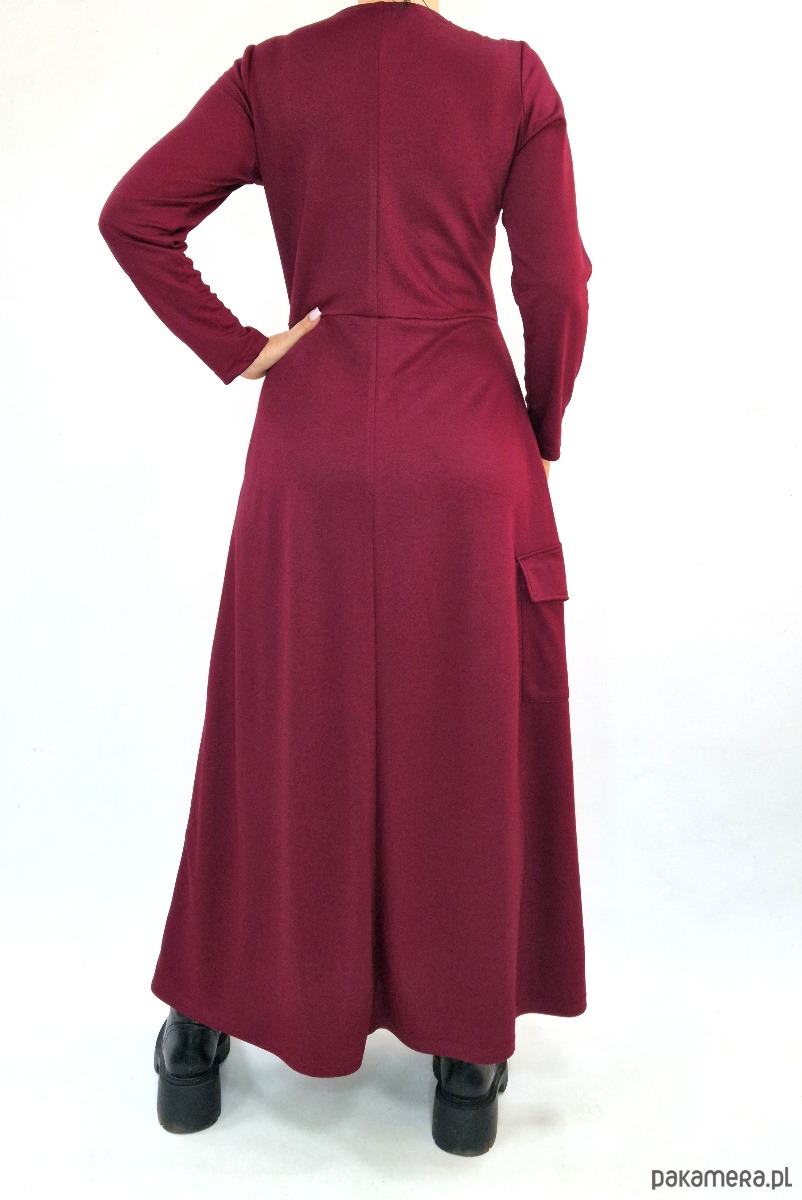 Bordowa sukienka maxi z kieszeniami roz 36-56