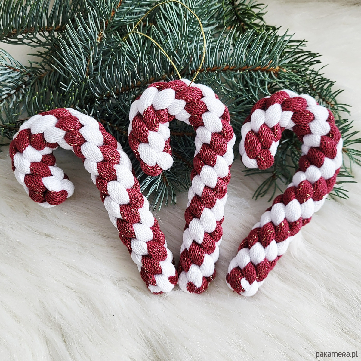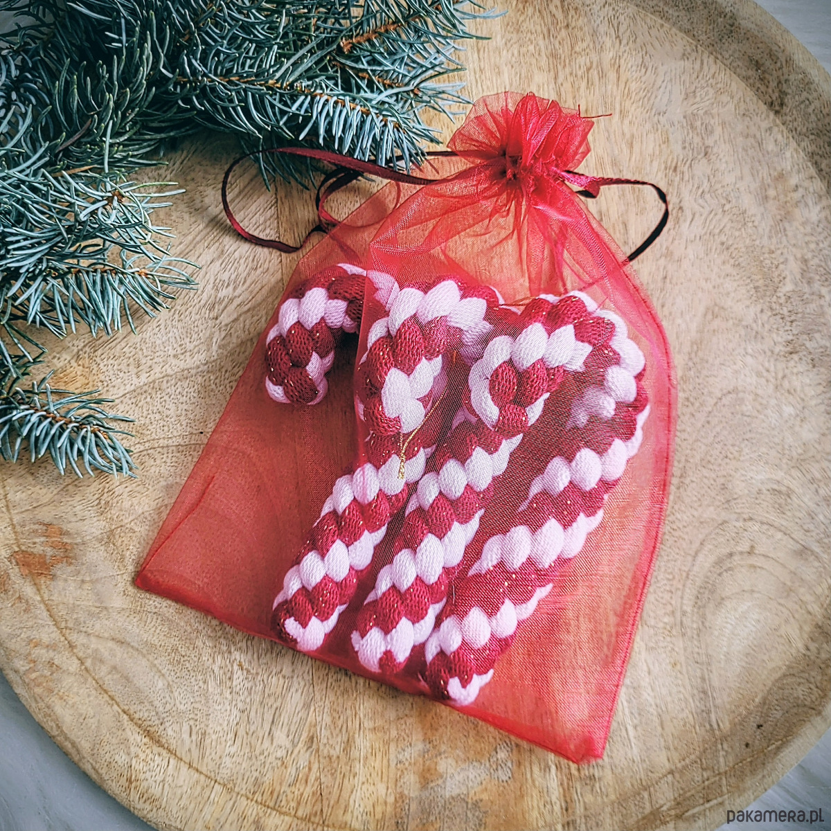Bordowe Zawieszki Na Choinkę - laski cukrowe plecione, zestaw 3szt.