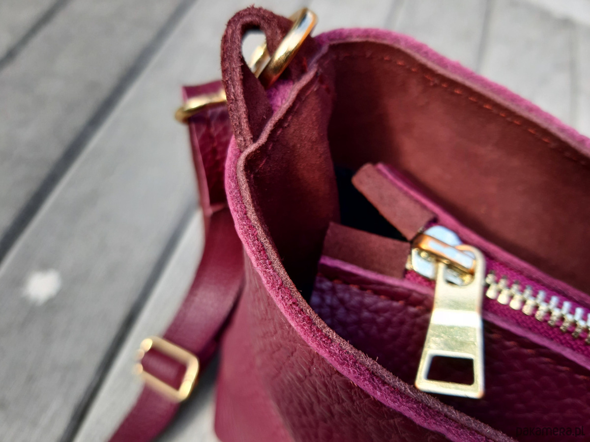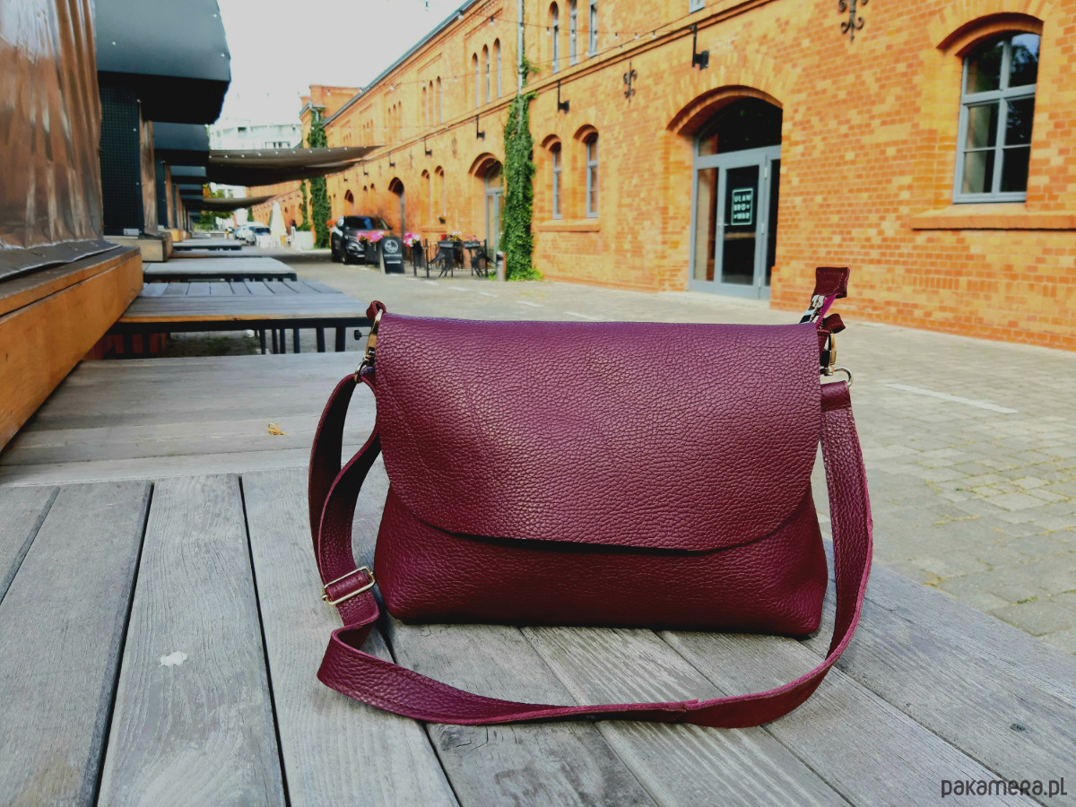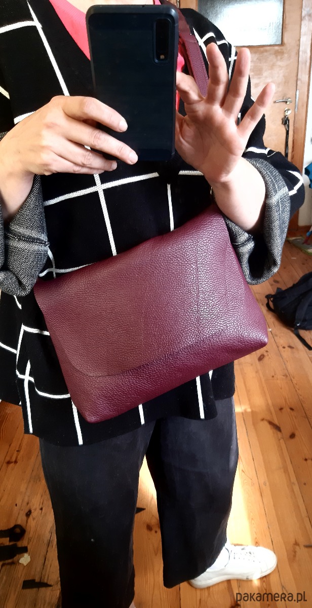 Powiem tak - jest świetna. Bo fajna wielkość, co potwierdziło już kila klientek :) i bardzo fajna skóra. Kolor w zależności od światła robi się bordowy, albo wpada w w fuksję. Metal w kolorze jasno złotym, pięknie podkręca kolor skóry.