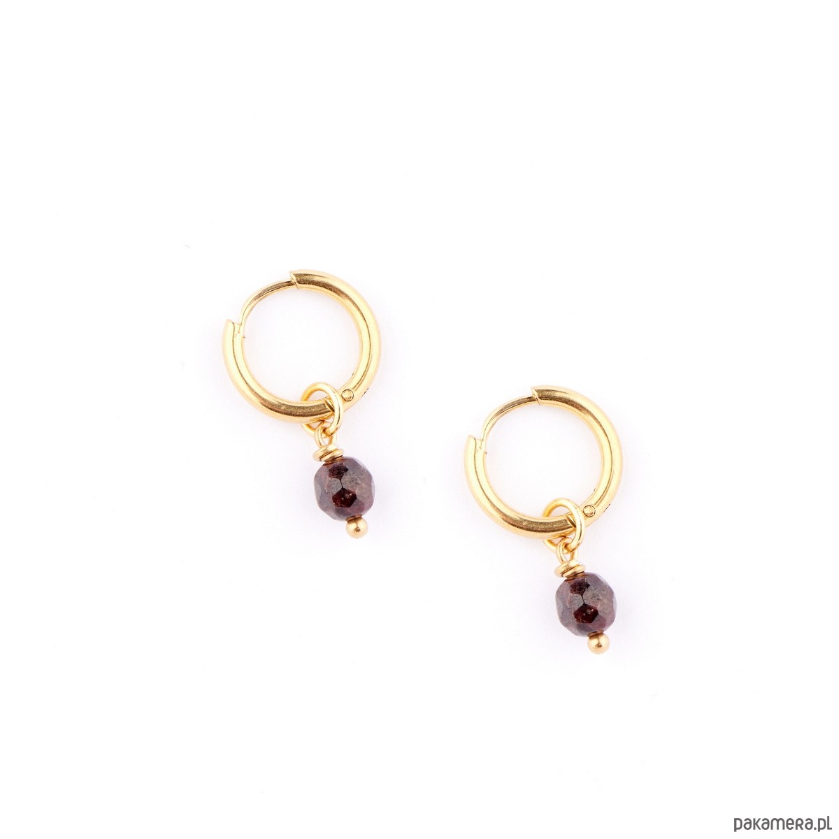 Wymiary: Kamienie: GranatWielkość kamieni: ok. 6mmWielkość kół: 12mm x 2mm lub 9mm x 2mmMateriał: antyalergiczna stal szlachetna