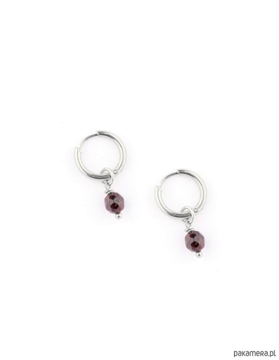 Wymiary: Kamienie: GranatWielkość kamieni: ok. 6mmWielkość kół: 12mm x 2mm lub 9mm x 2mmMateriał: antyalergiczna stal szlachetna