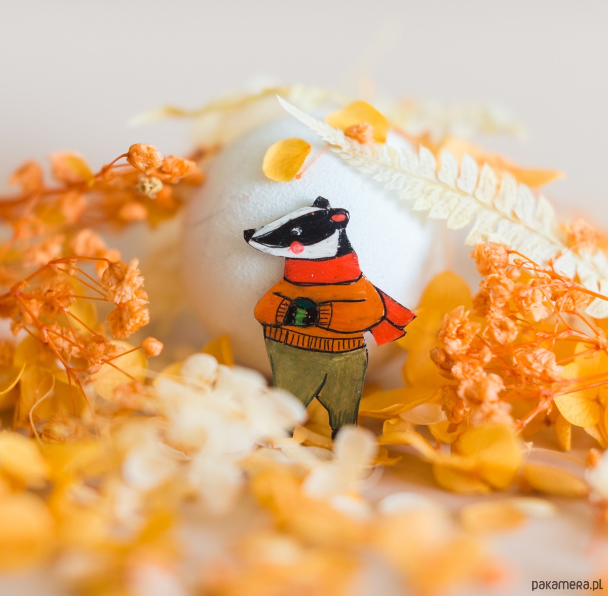 Borsuk Grześ jest małym zwierzątkiem dzięki czemu idealnie sprawdzi się jako ozdoba czapki, nerki i będzie super wyglądać na szaliku i wełnianym swetrze.