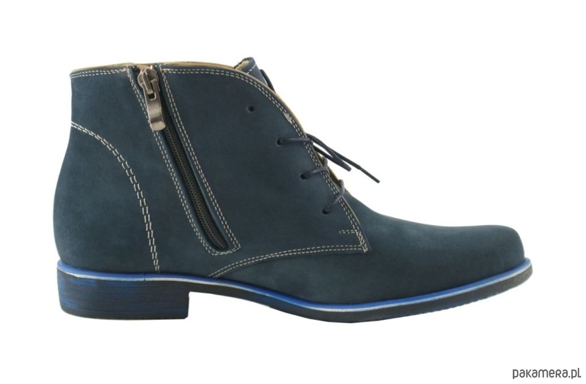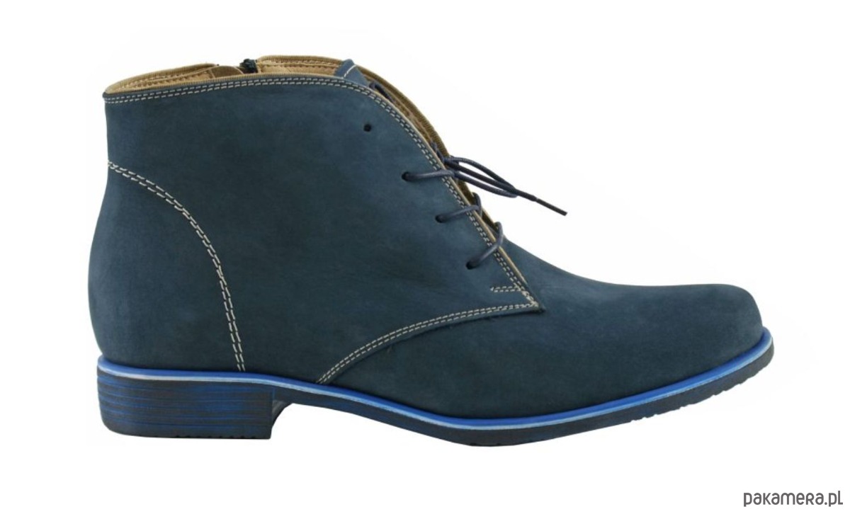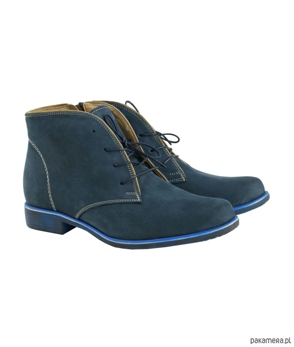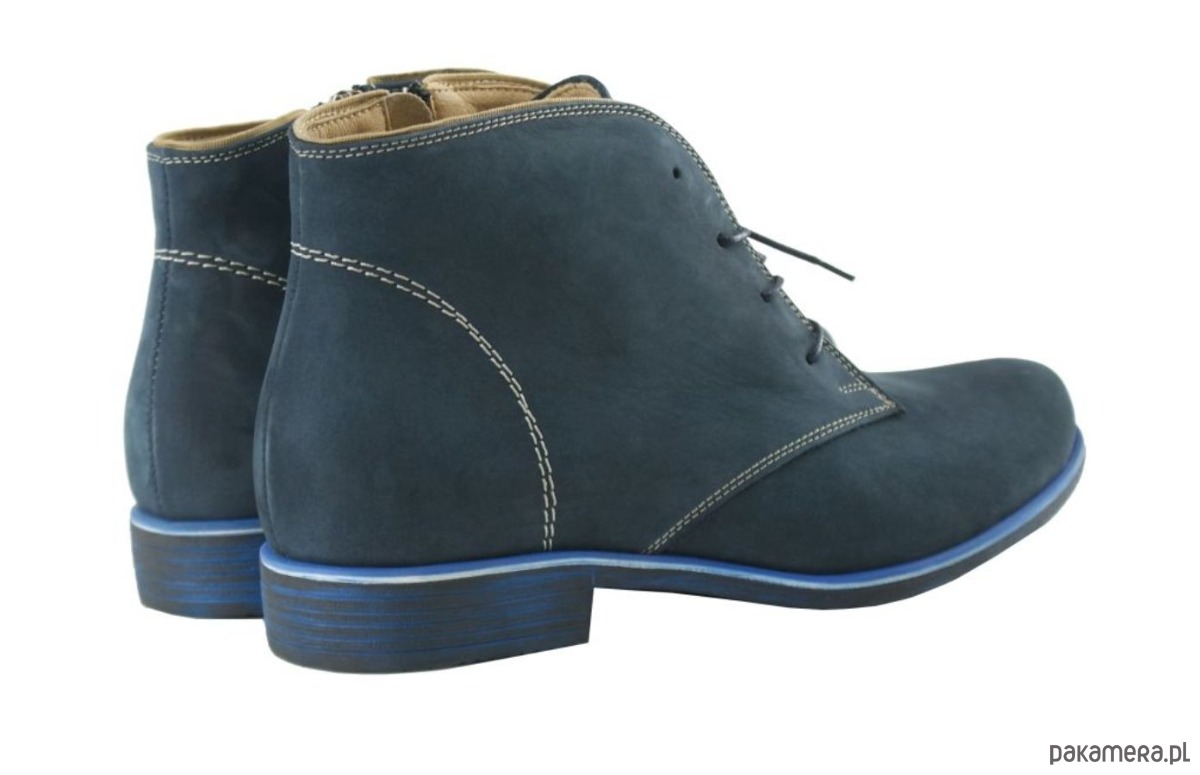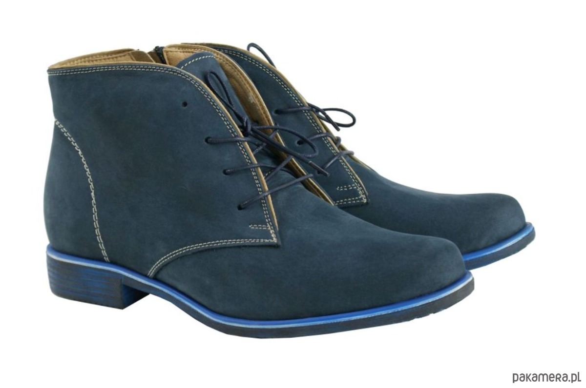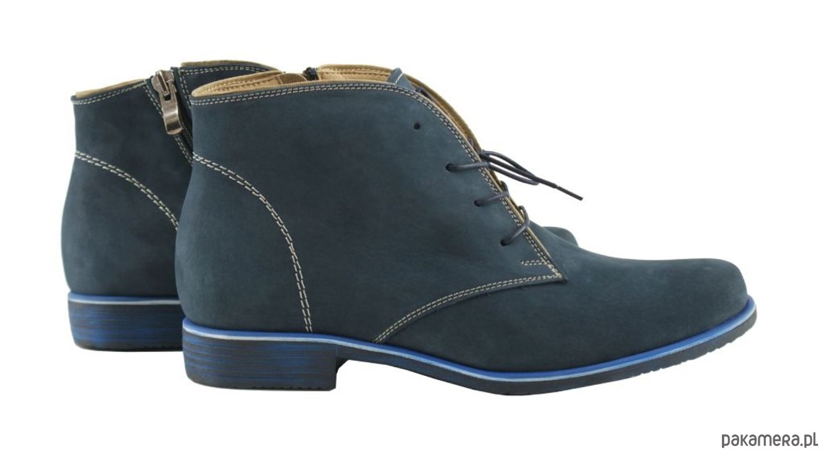 Skórzane półbuty z naturalnej skóry, nubuk, sznurowane z suwakiem, dwukolorowe.