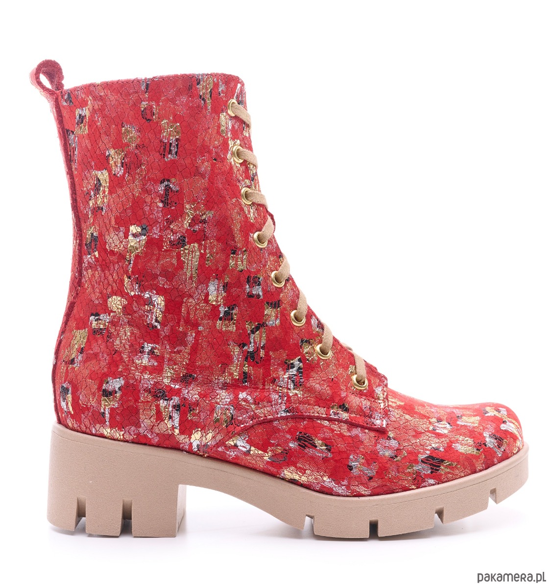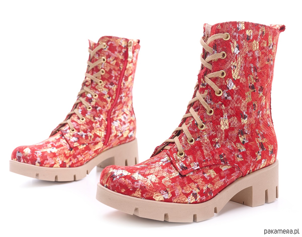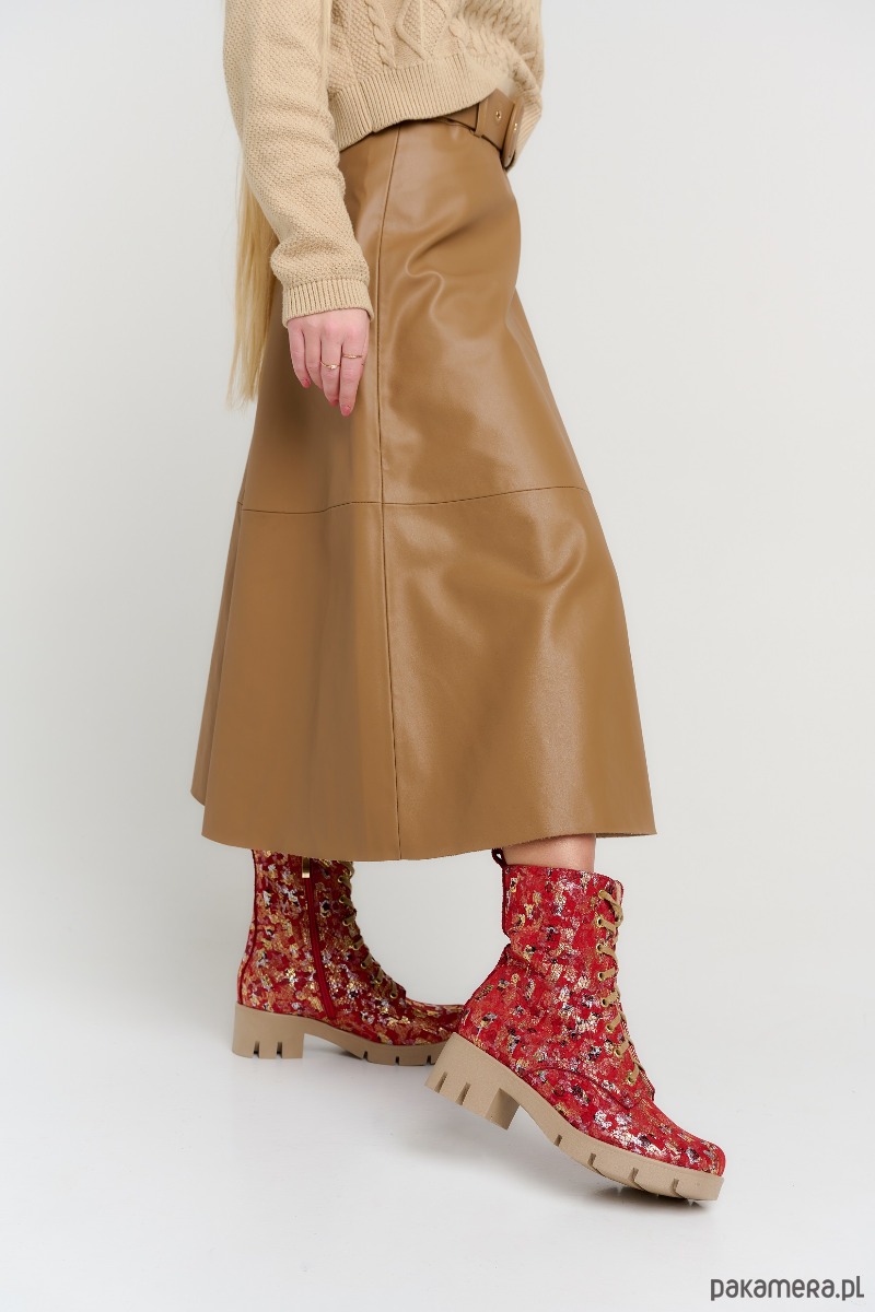 Botki skórzane - czerwona mozaika (6663) BOSCCOLO