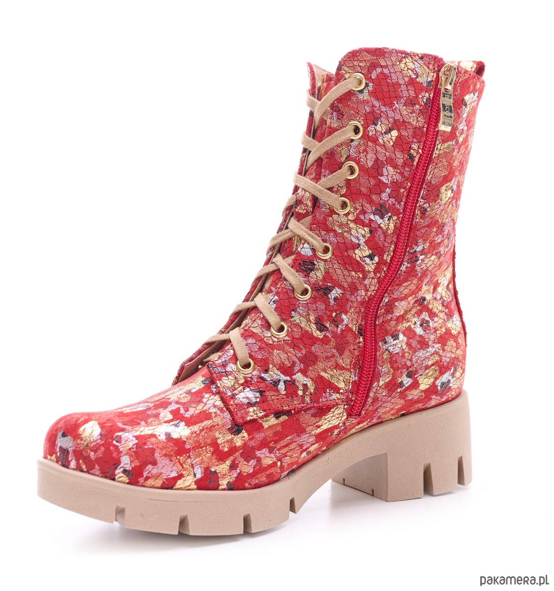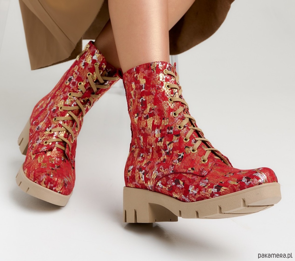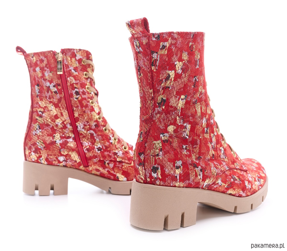 Botki skórzane - czerwona mozaika (6663) BOSCCOLO