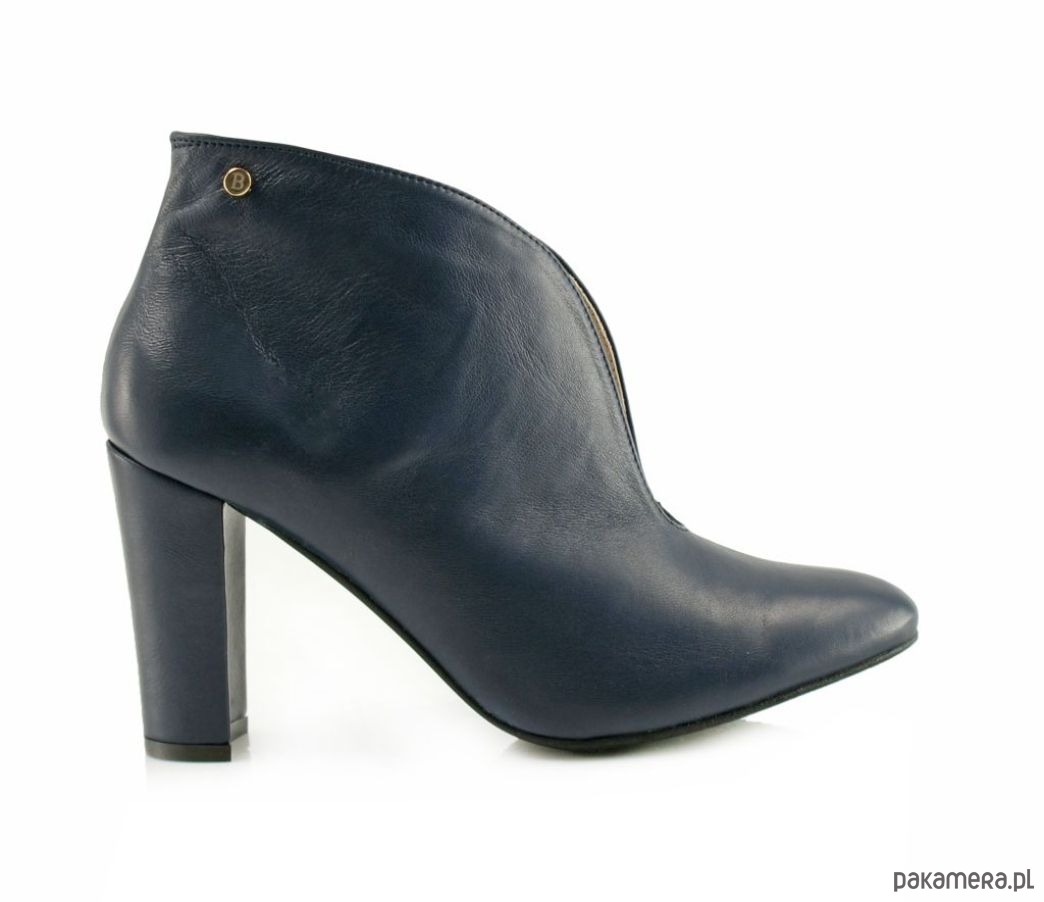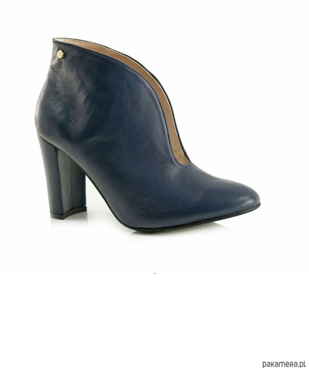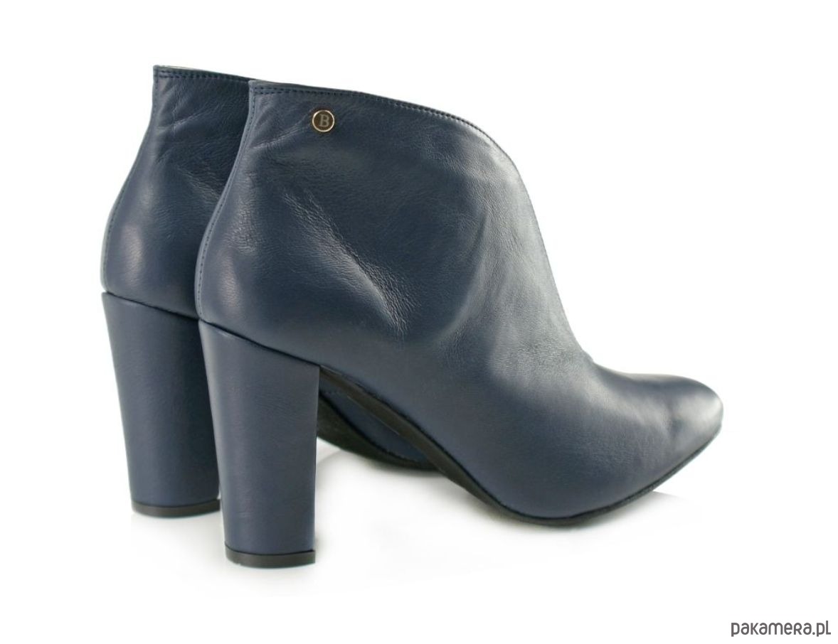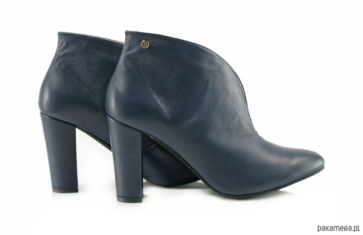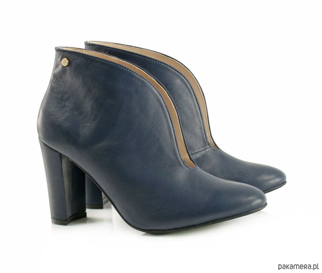 Skórzane botki na obcasie ze skóry naturalnej, wsuwane.