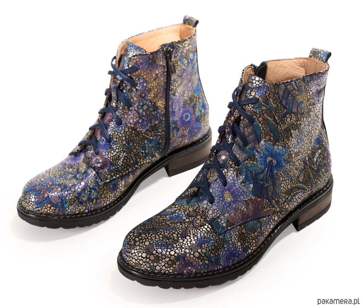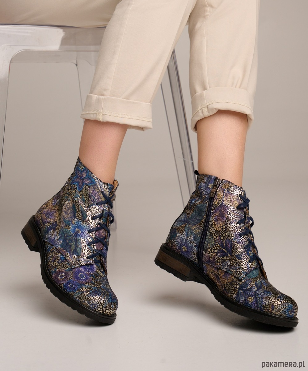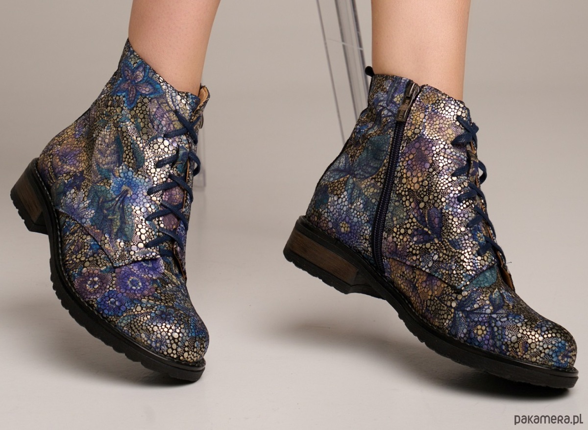 Eleganckie botki skórzane z naturalnej w kwiatowy wzór.