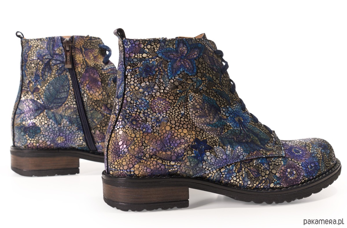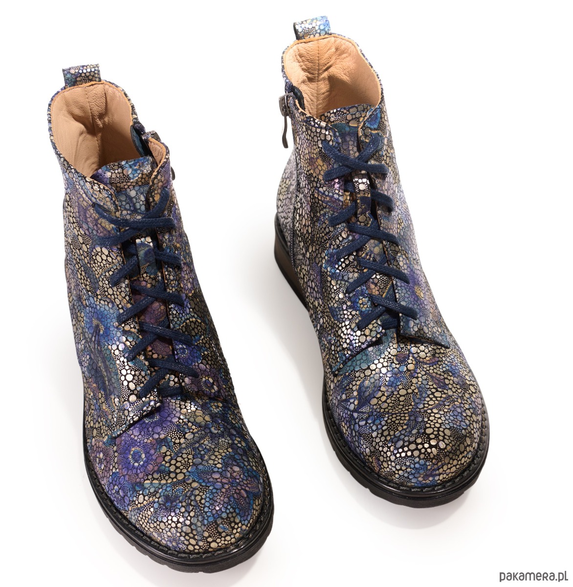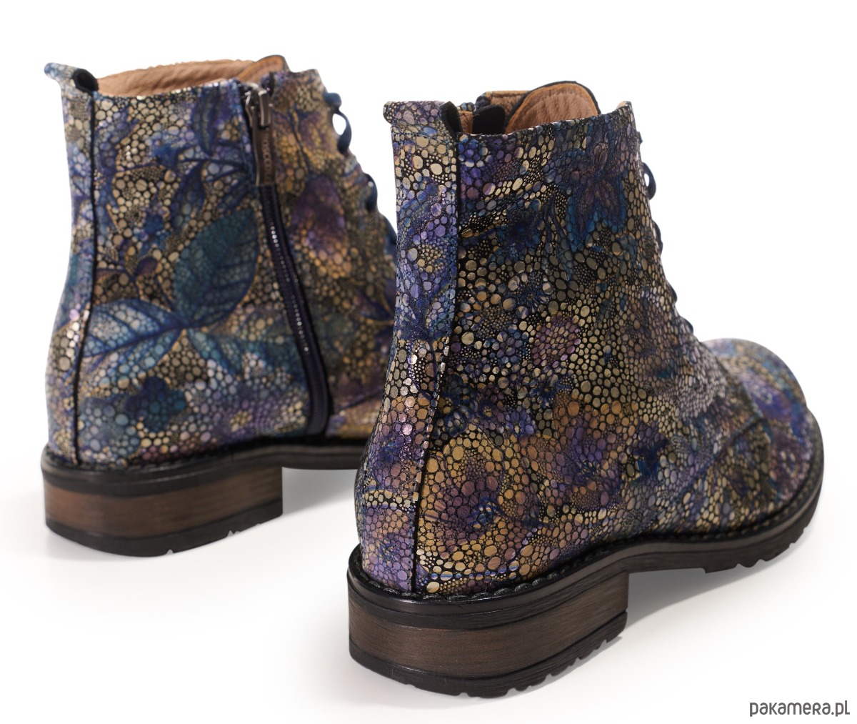 Eleganckie botki skórzane z naturalnej w kwiatowy wzór.