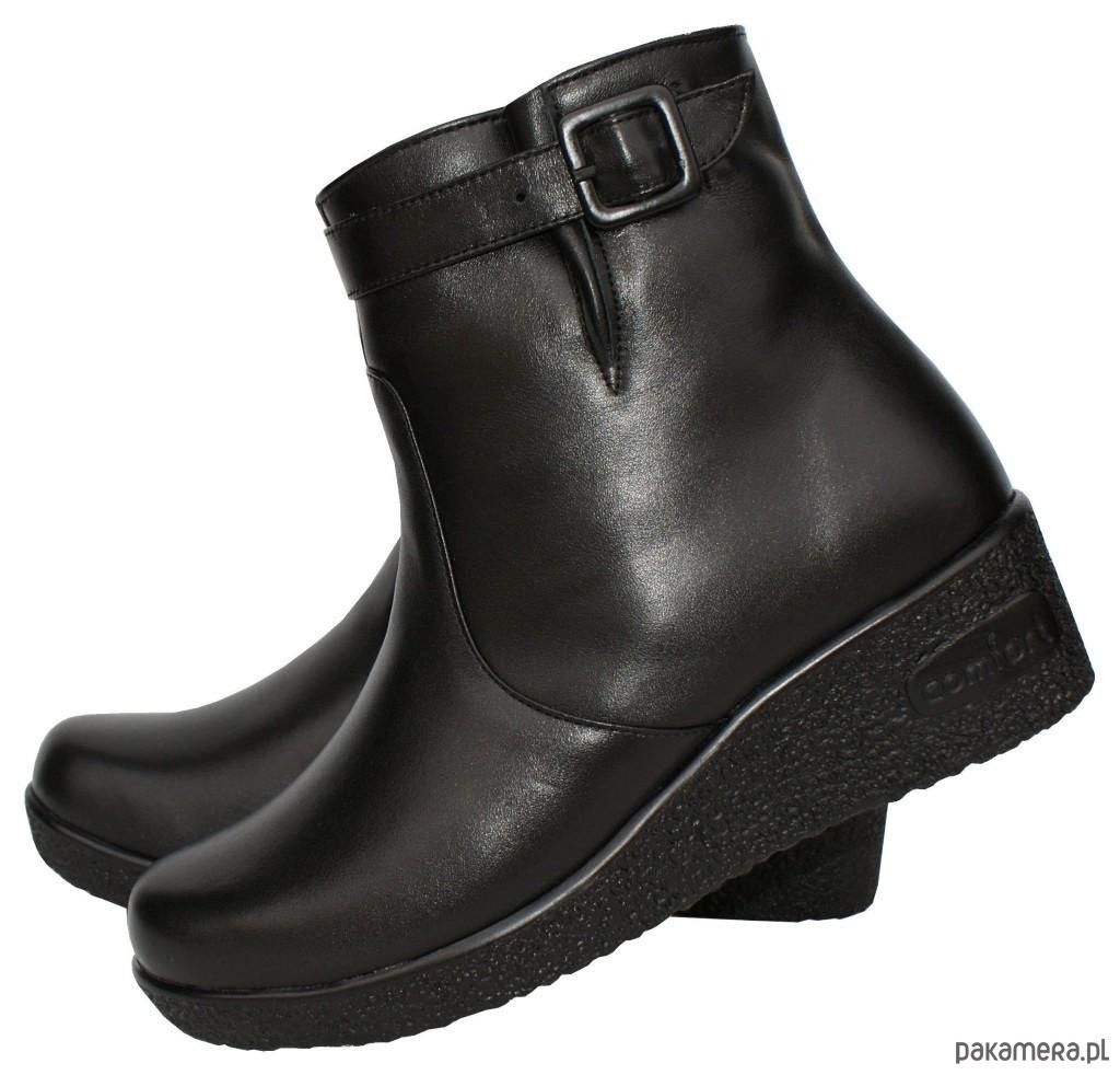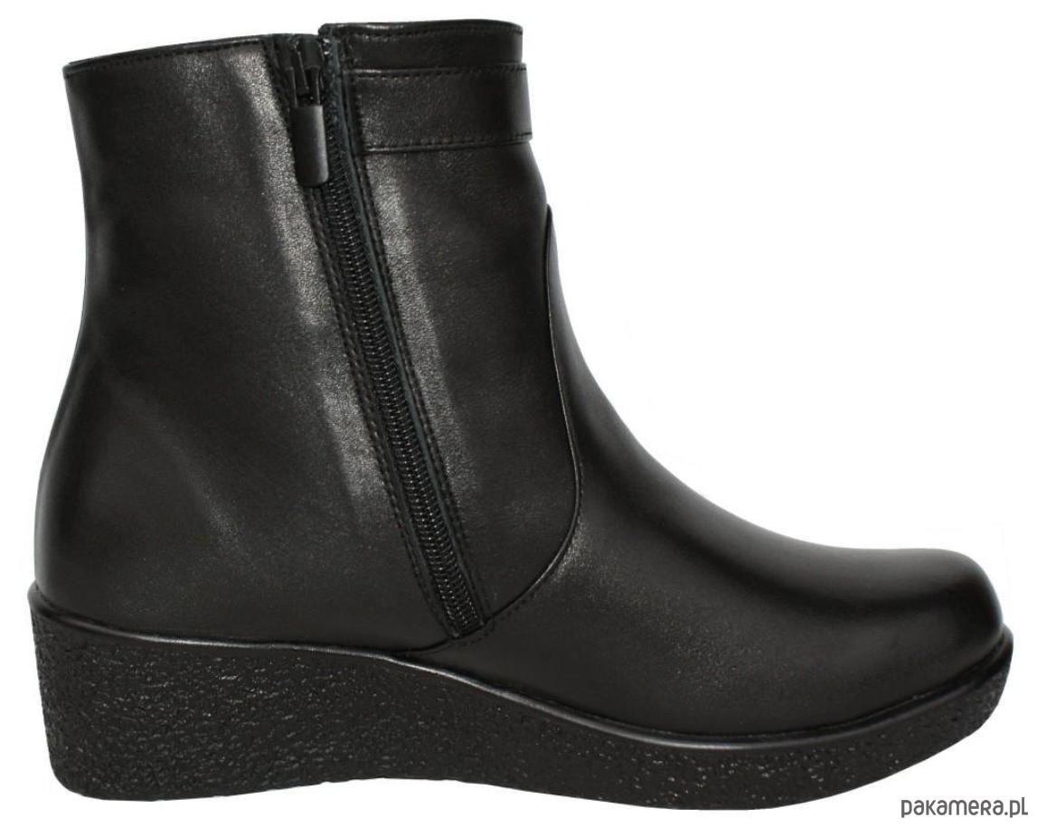 Botki skórzane z naturalnej skóry licowej, na grubej podeszwie typu "comfort" dającej dobrą izolację od podłoża.