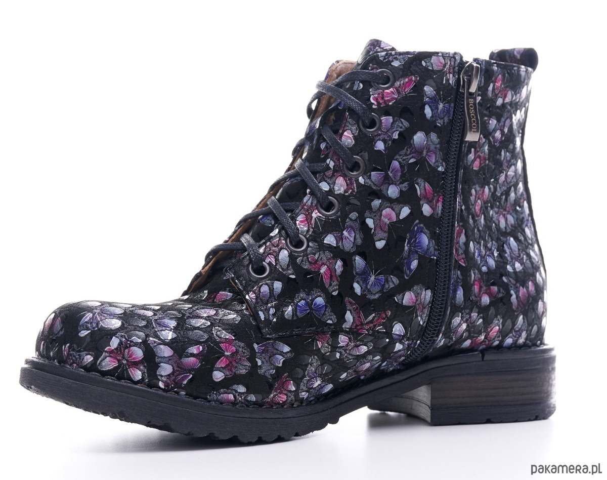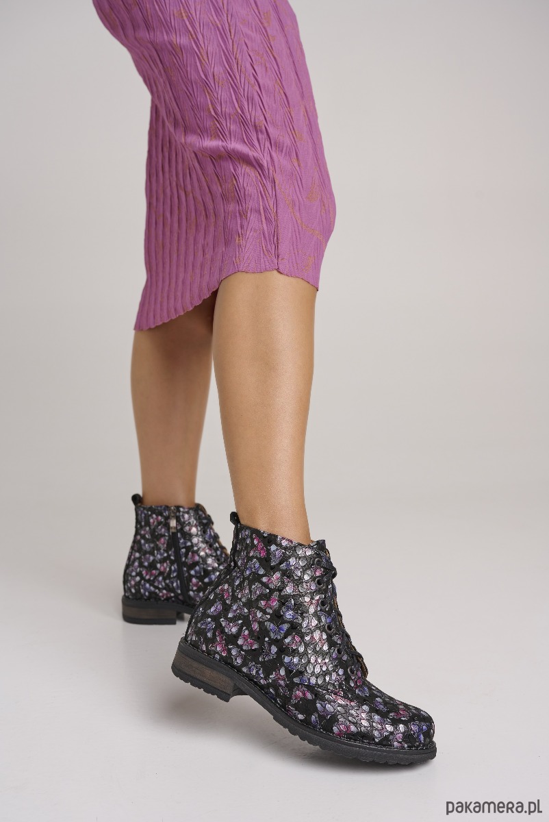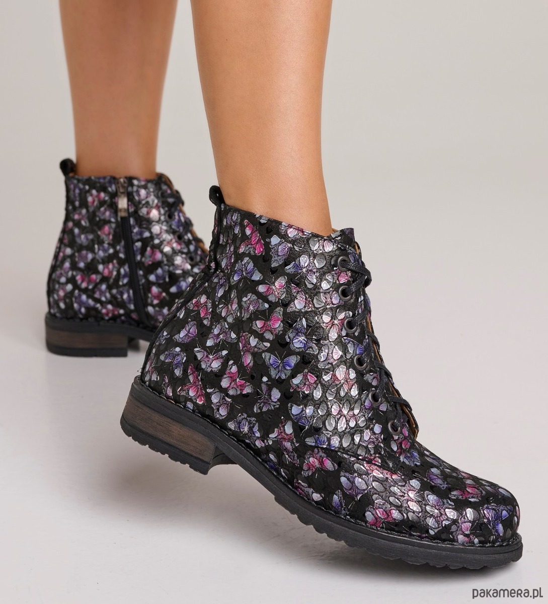 Eleganckie botki skórzane z naturalnej skóry z kolorowym printem- motylki.