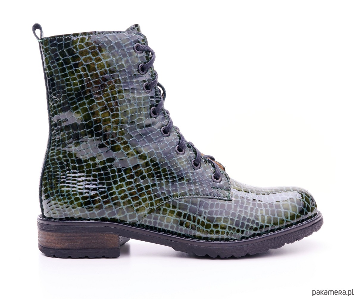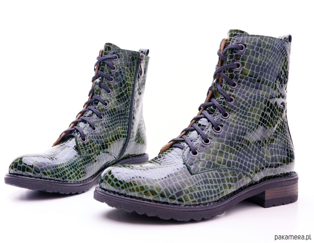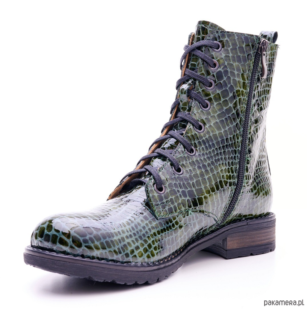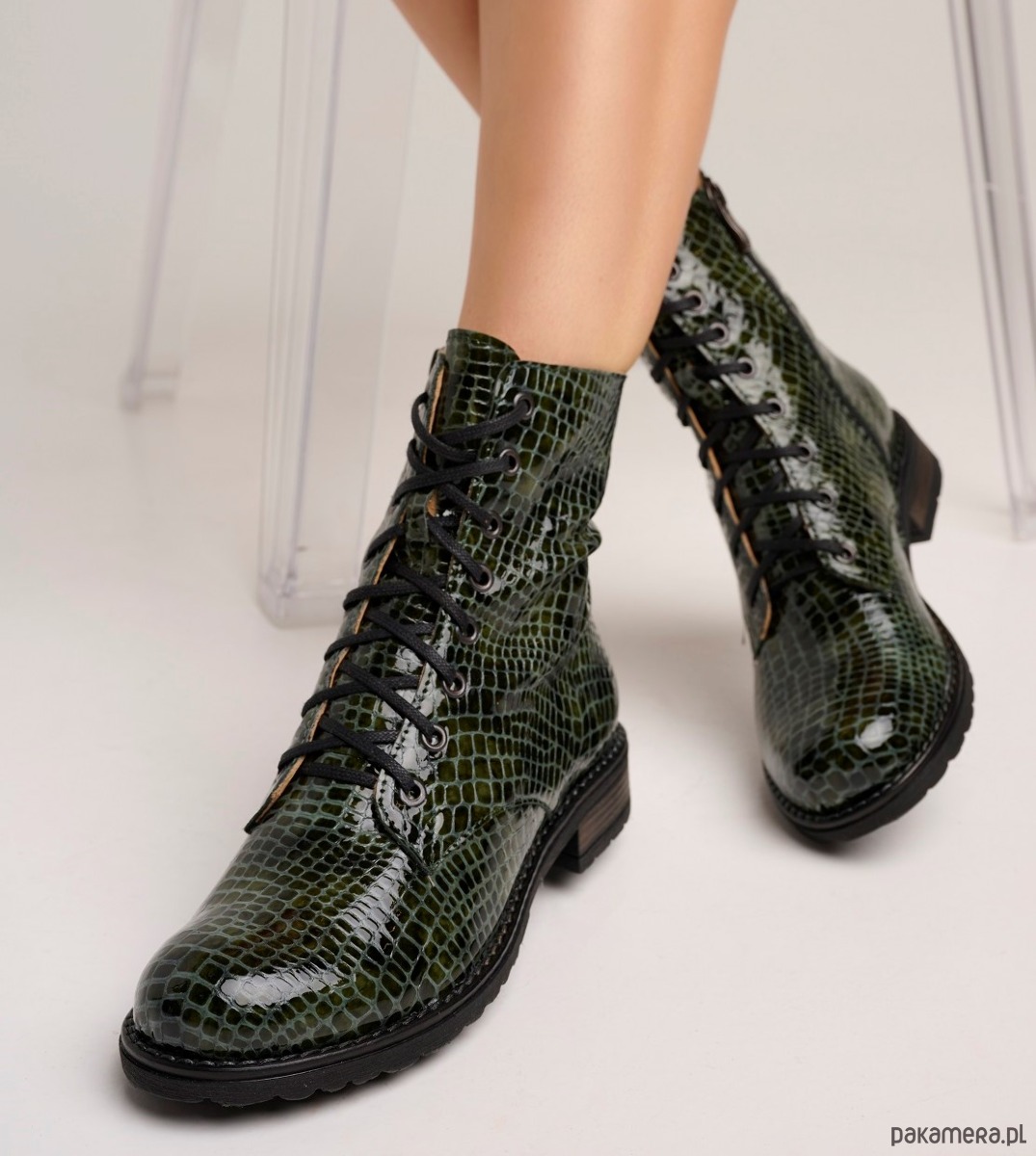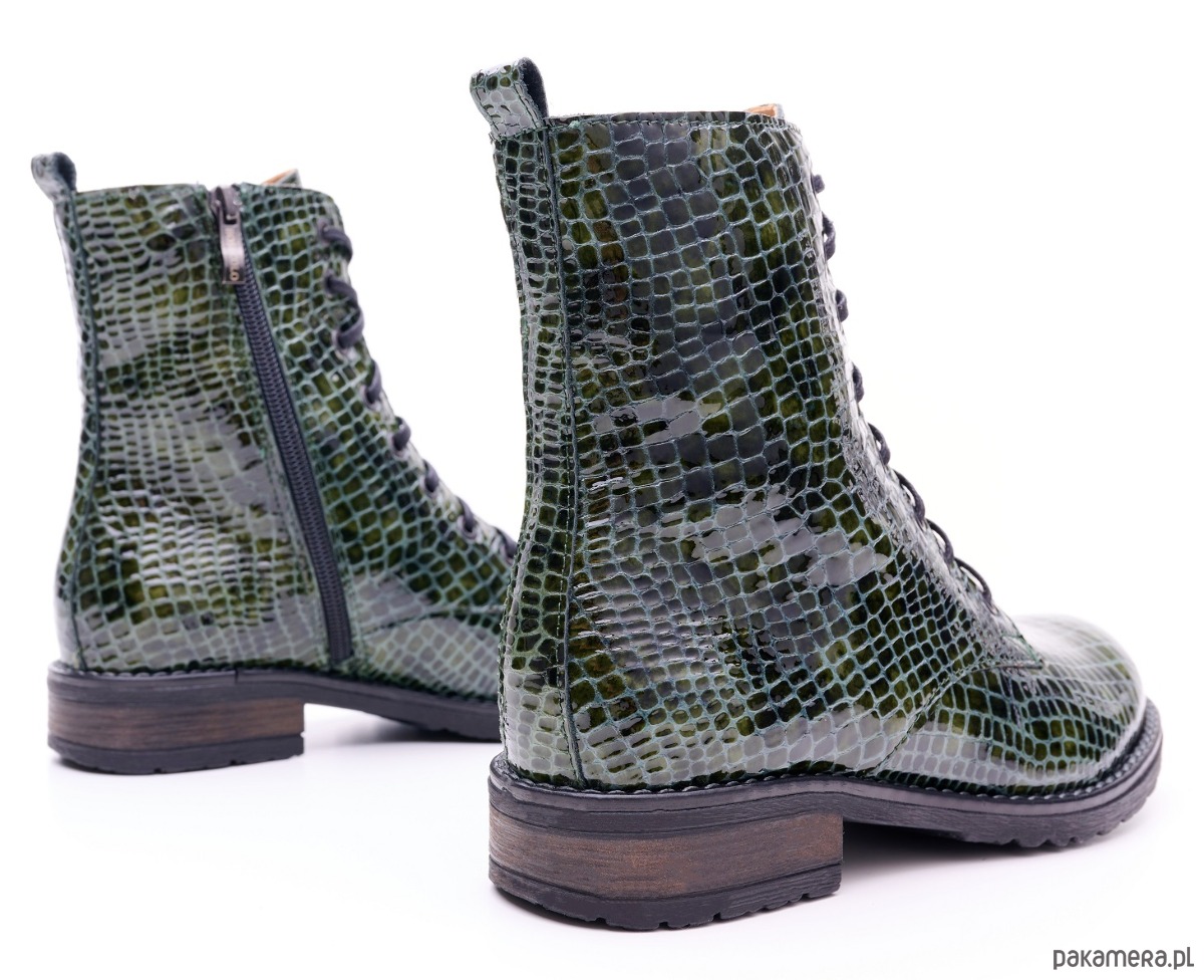 Eleganckie botki skórzane z naturalnej skóry o fakturze krokodyla.