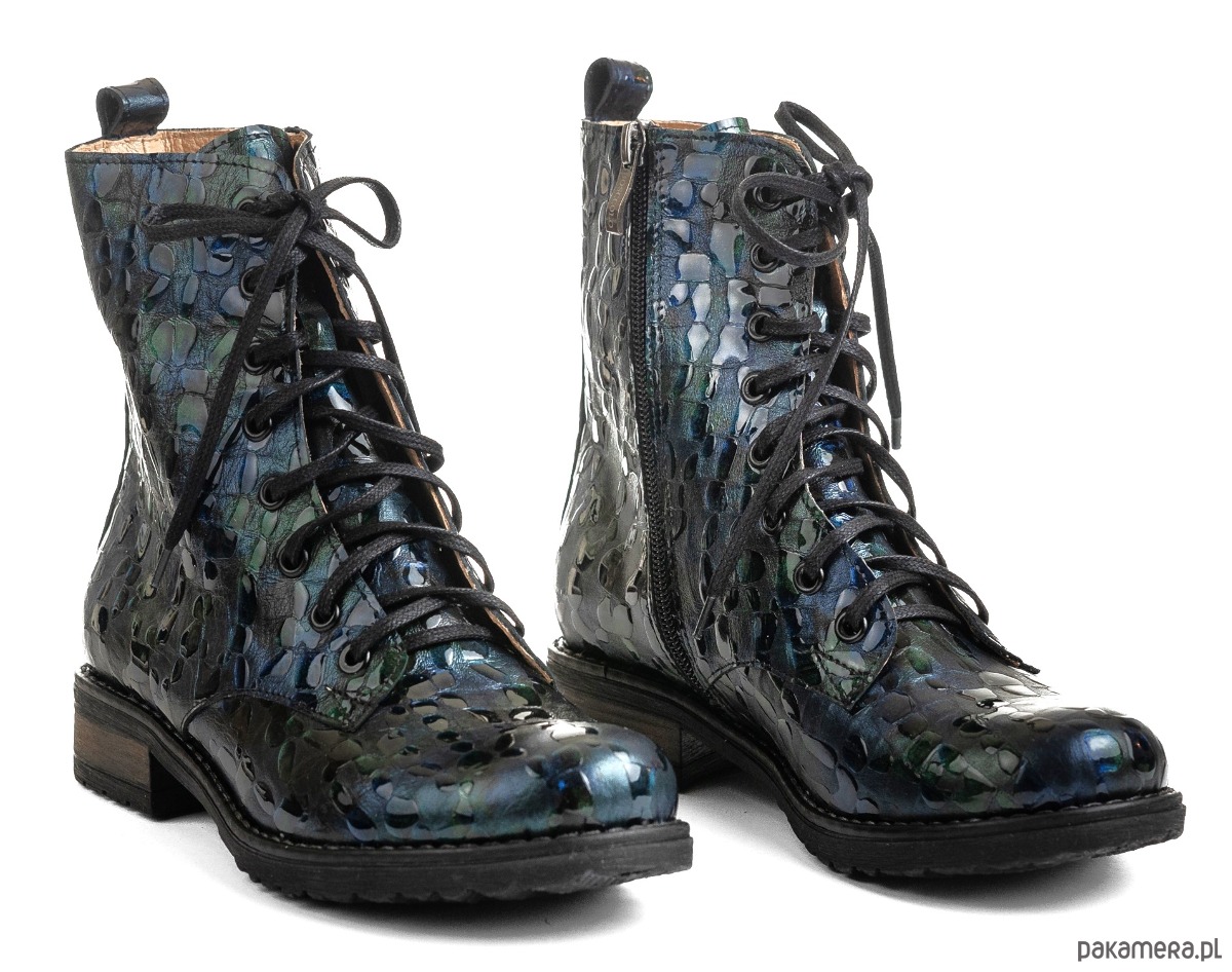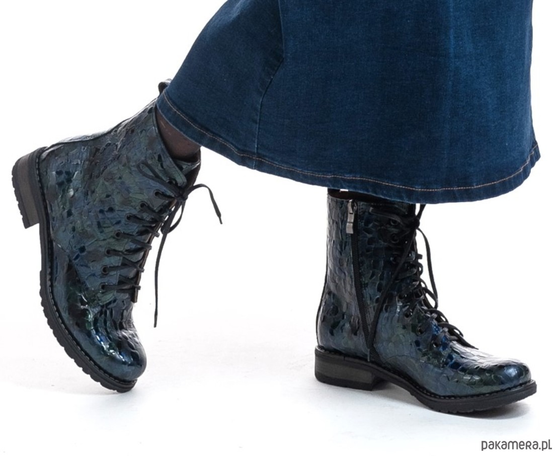 Eleganckie botki skórzane z naturalnej skóry o fakturze krokodyla.