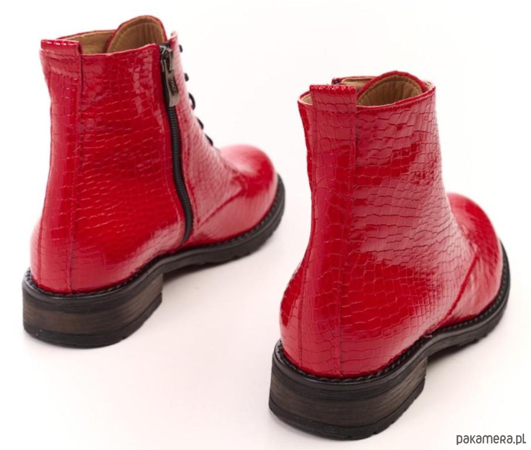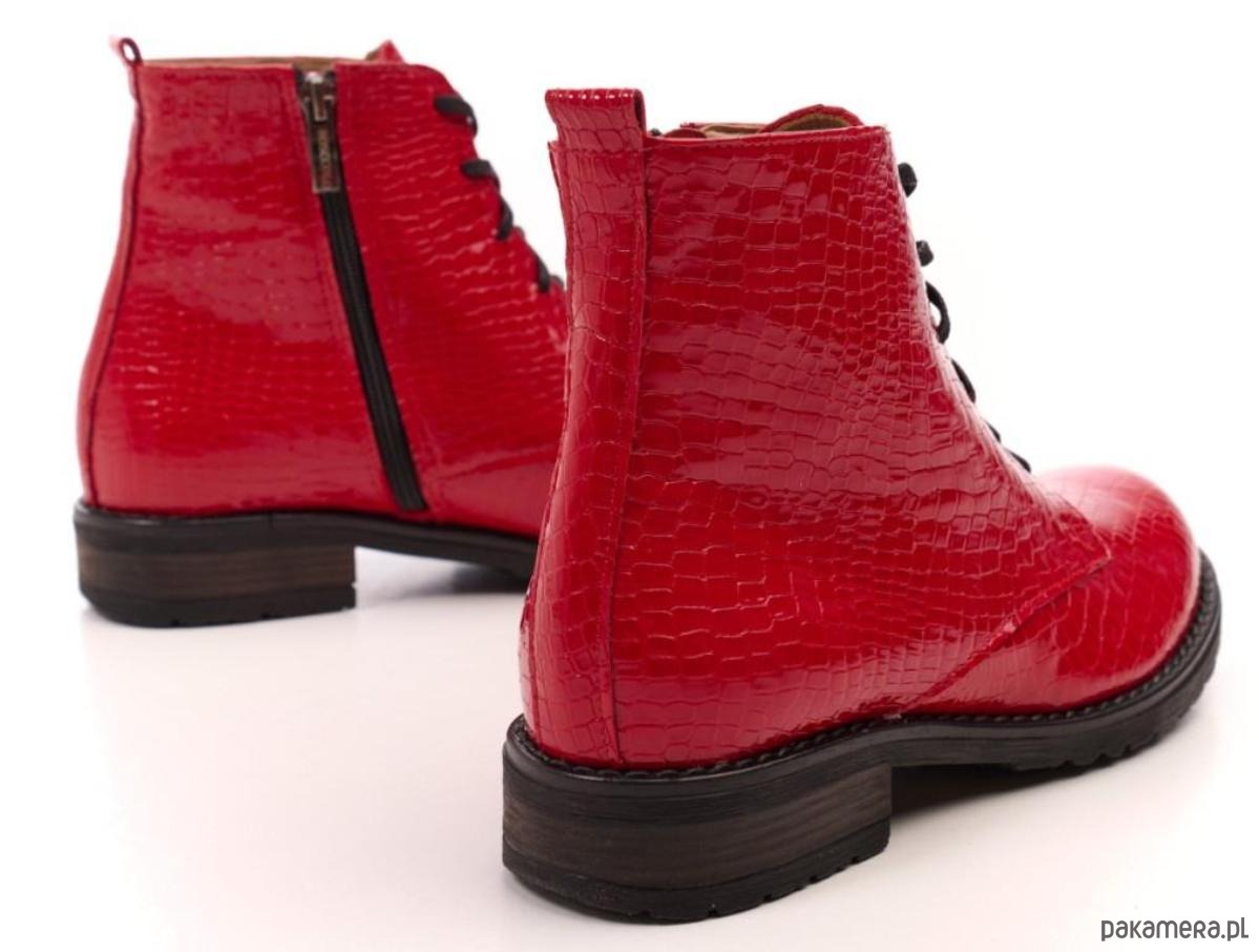 Eleganckie botki skórzane z naturalnej skóry lakierowanej o fakturze skóry krokodyla.