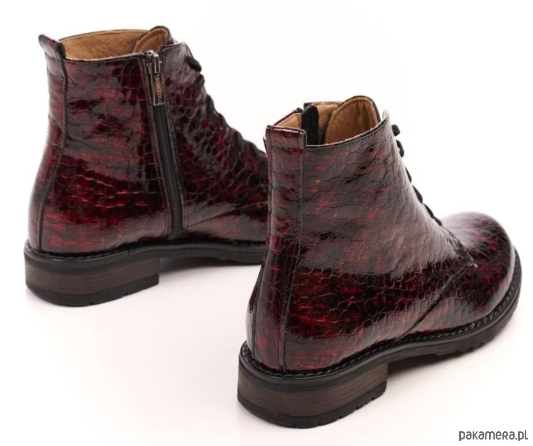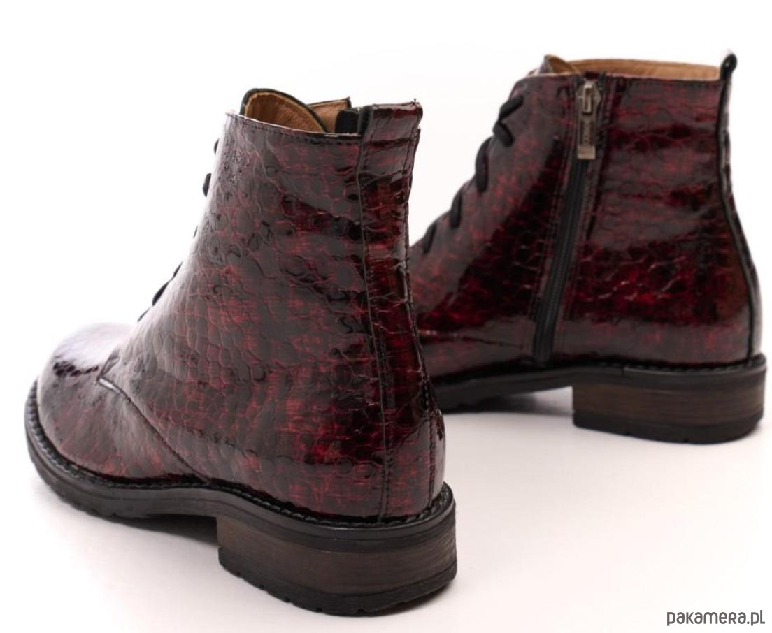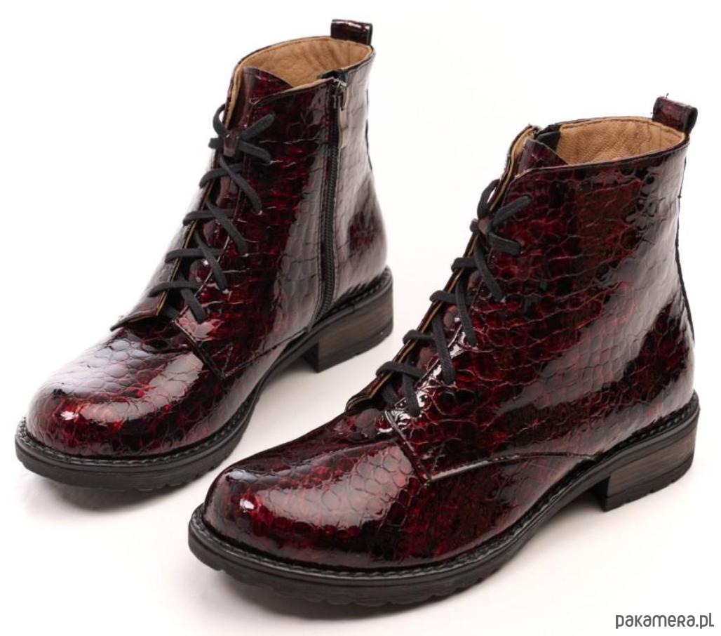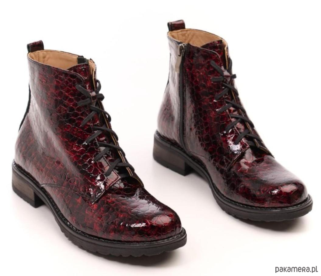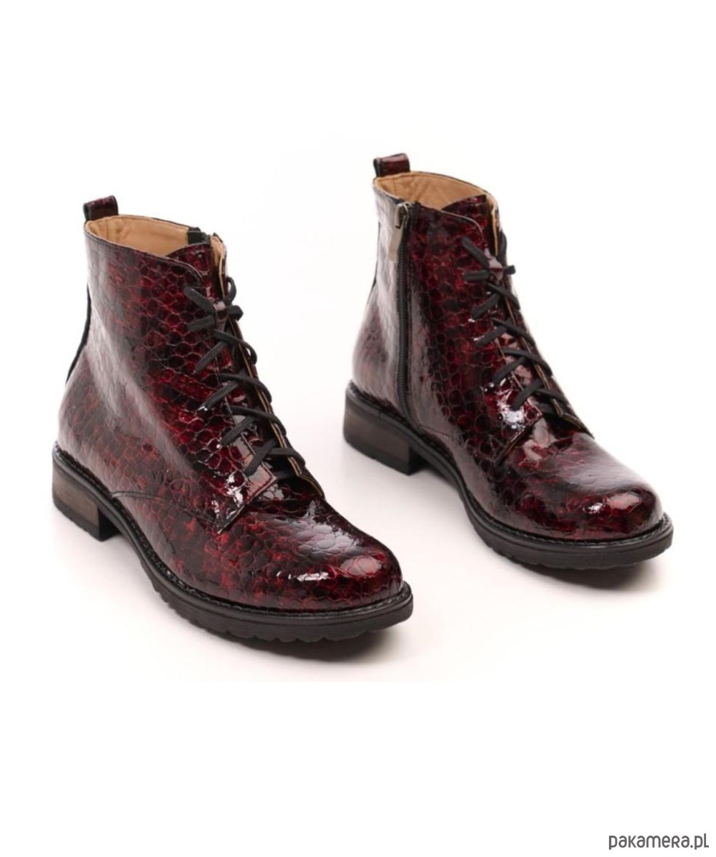 Botki skórzane - suwak + sznurówki - kolor bordowy (6386)