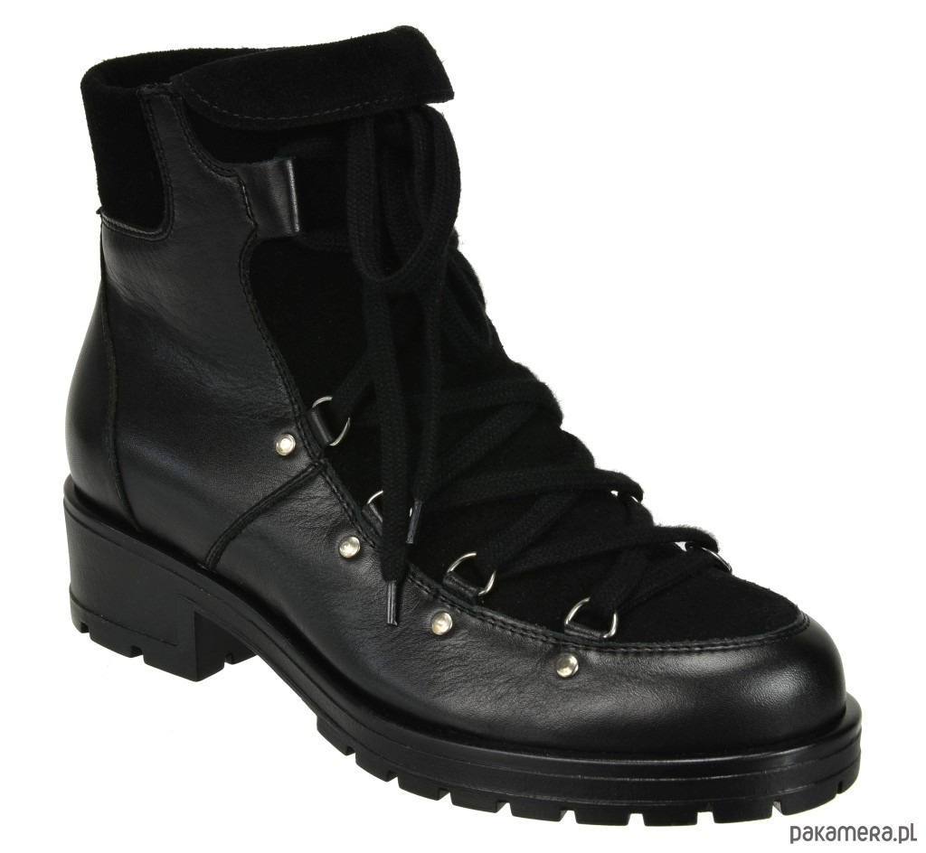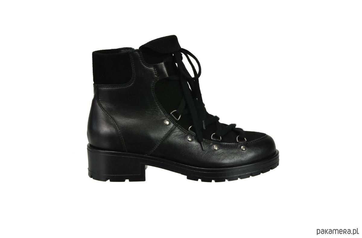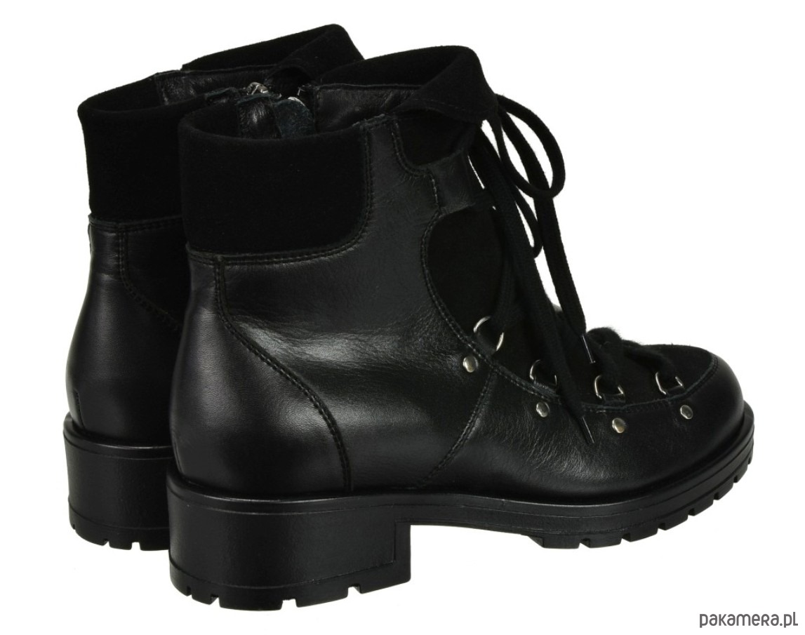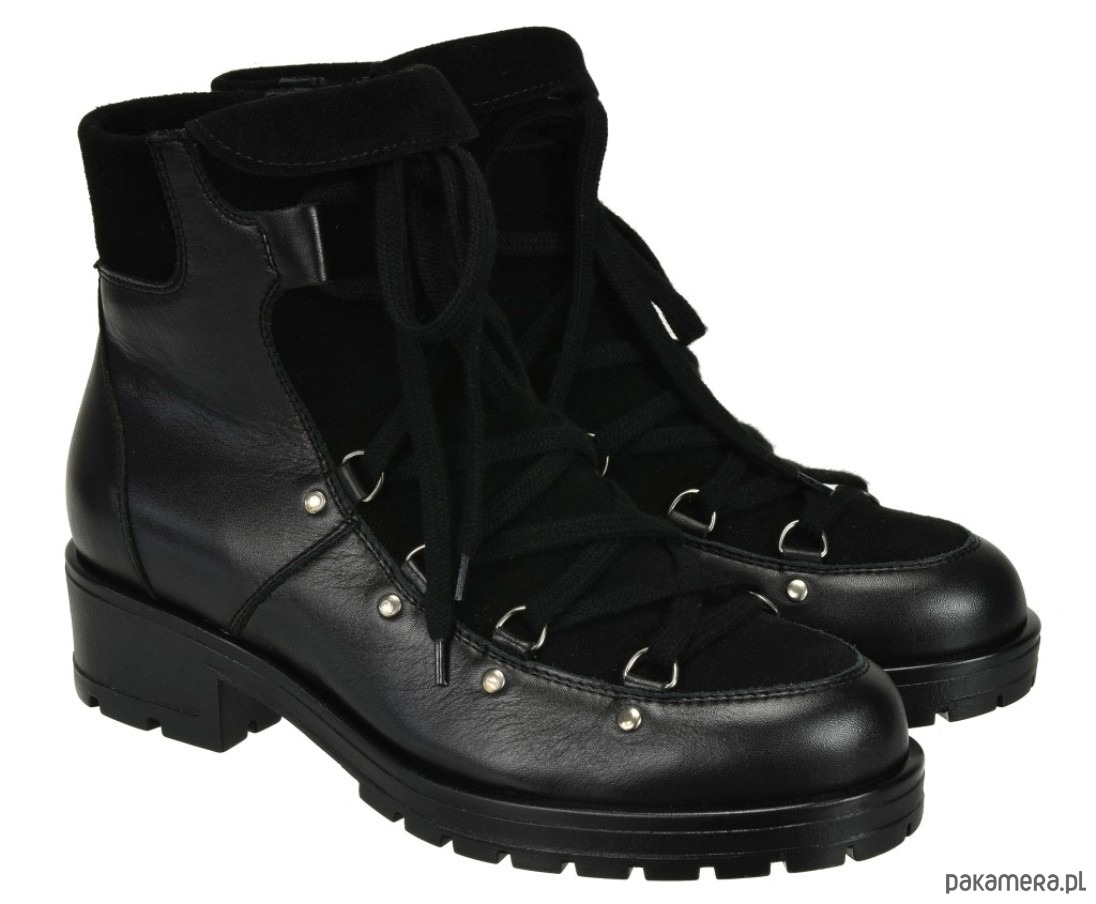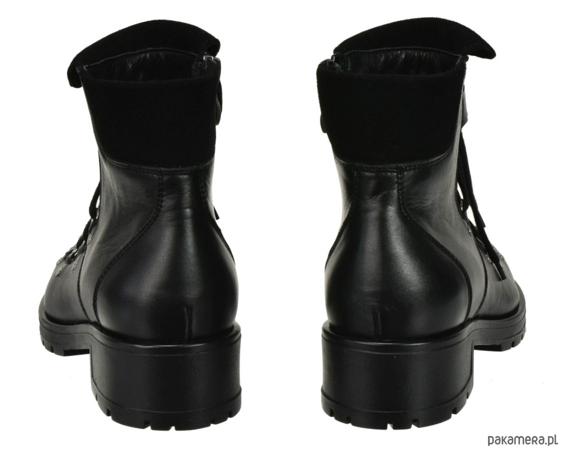 Botki skórzane - suwak + sznurówki - lekko ocieplane (6140)