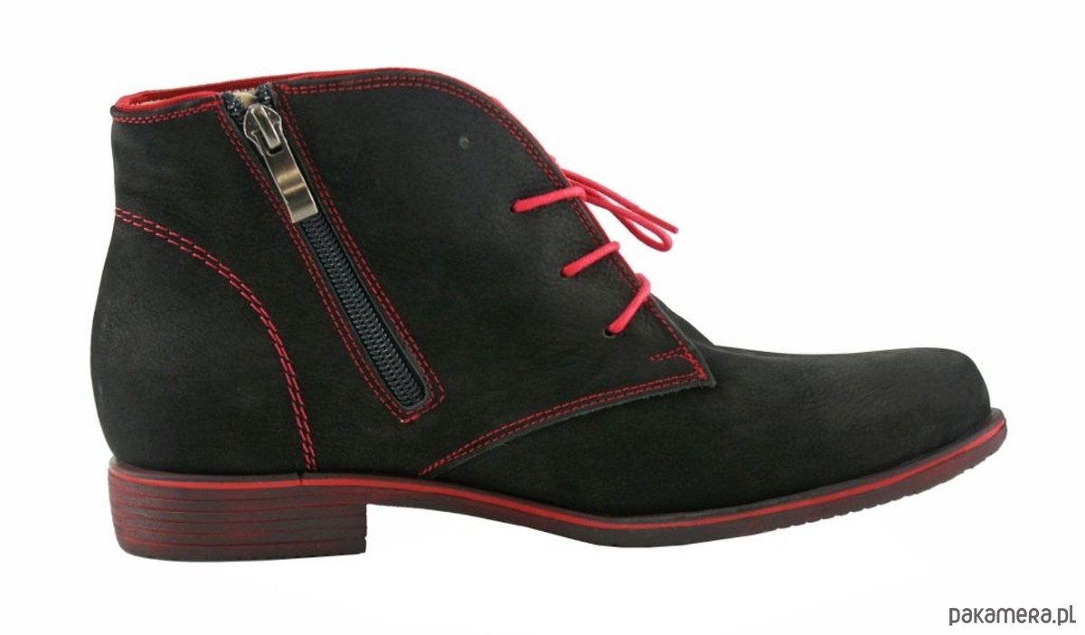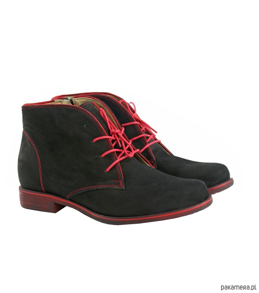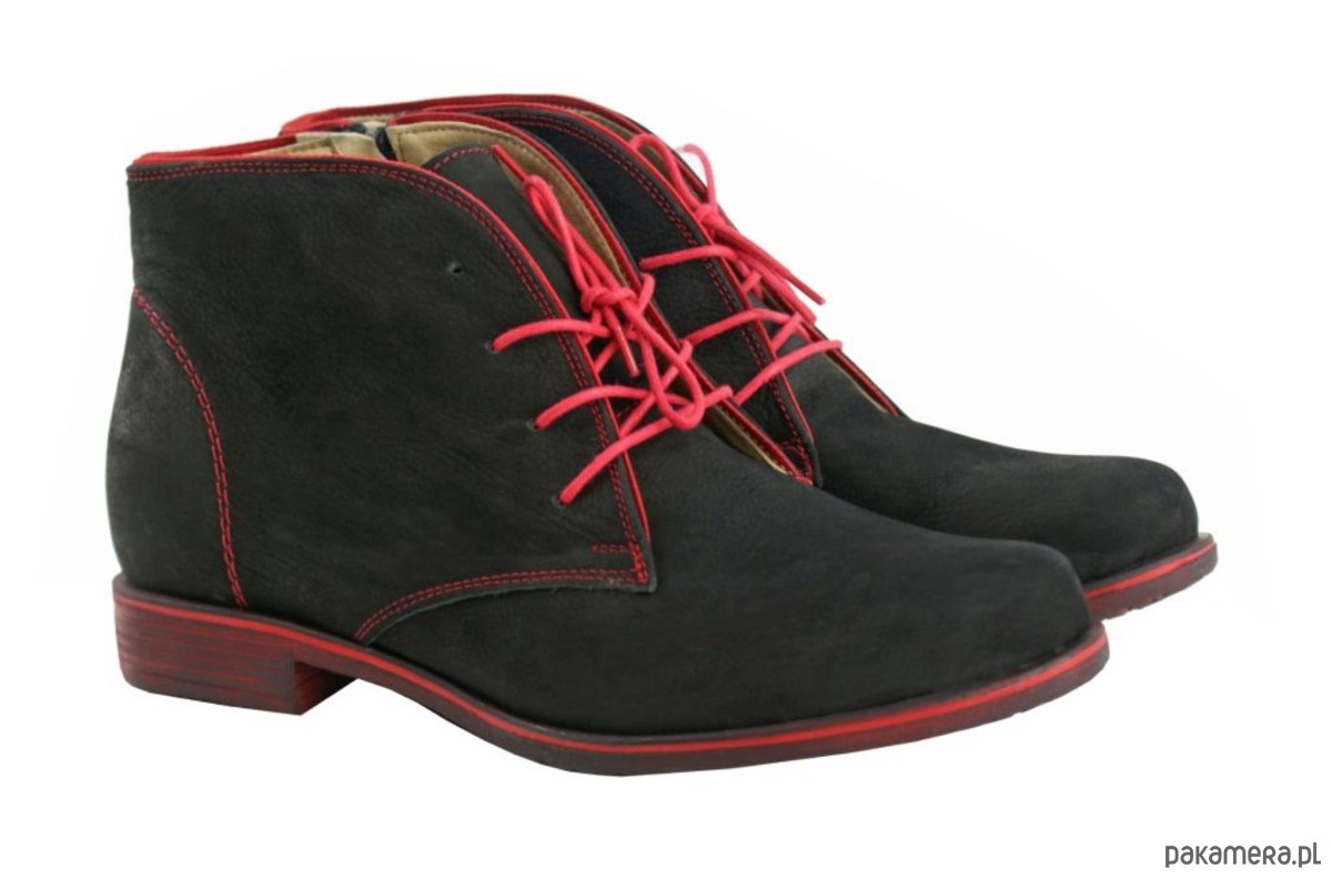 Botki Skórzane - sznurowane + suwak (4296)