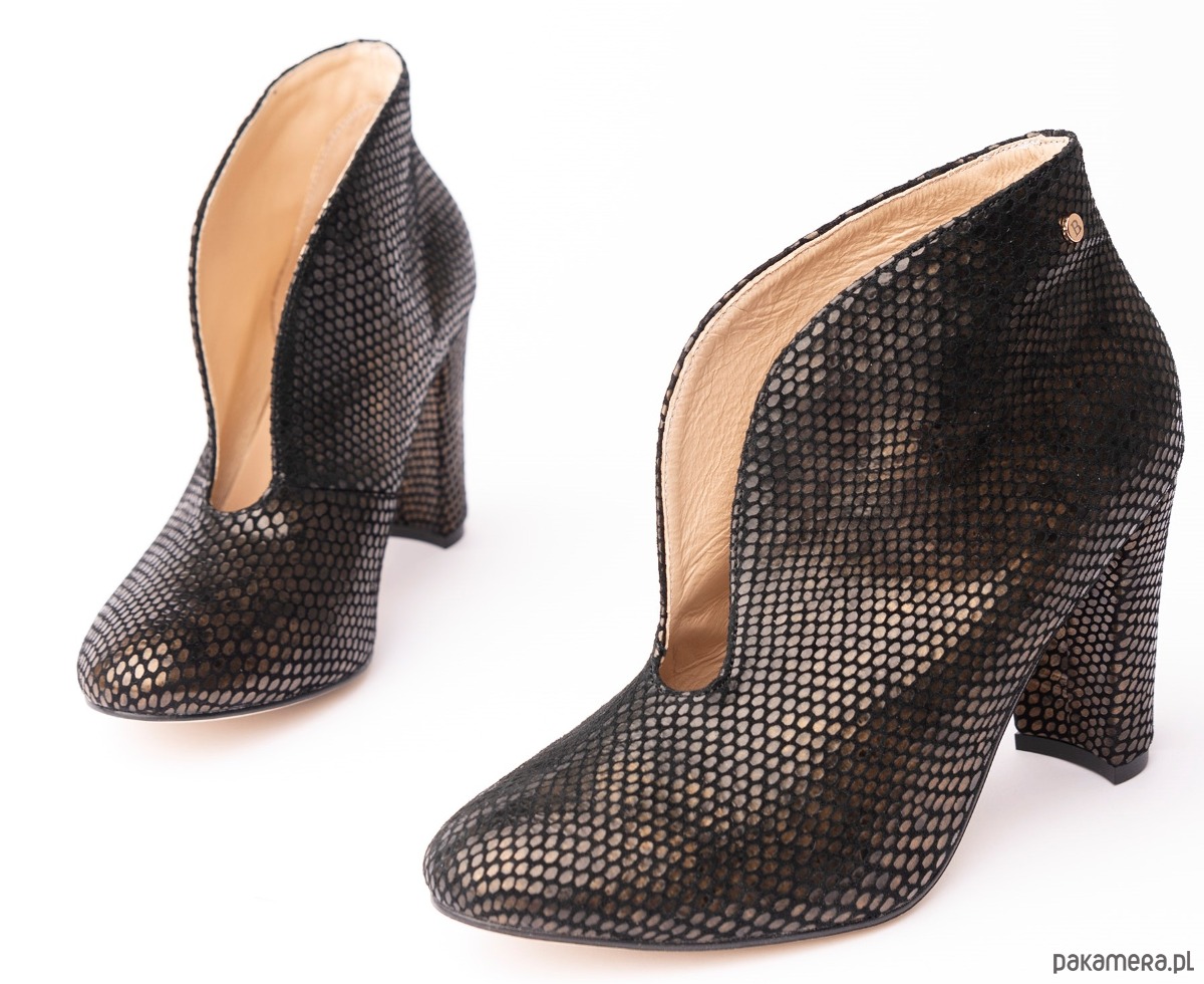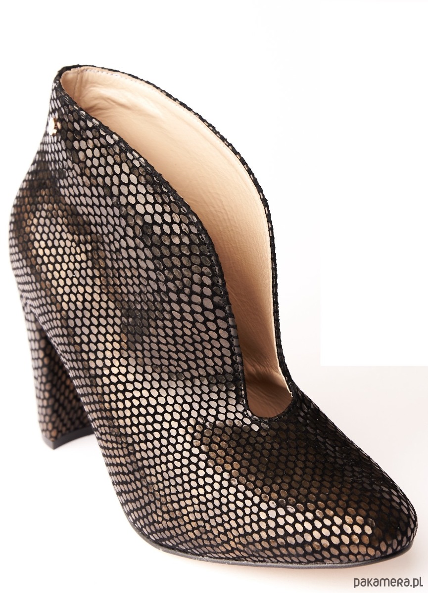 Botki skórzane wsuwane wzór łuski czarno złoty (6292)
