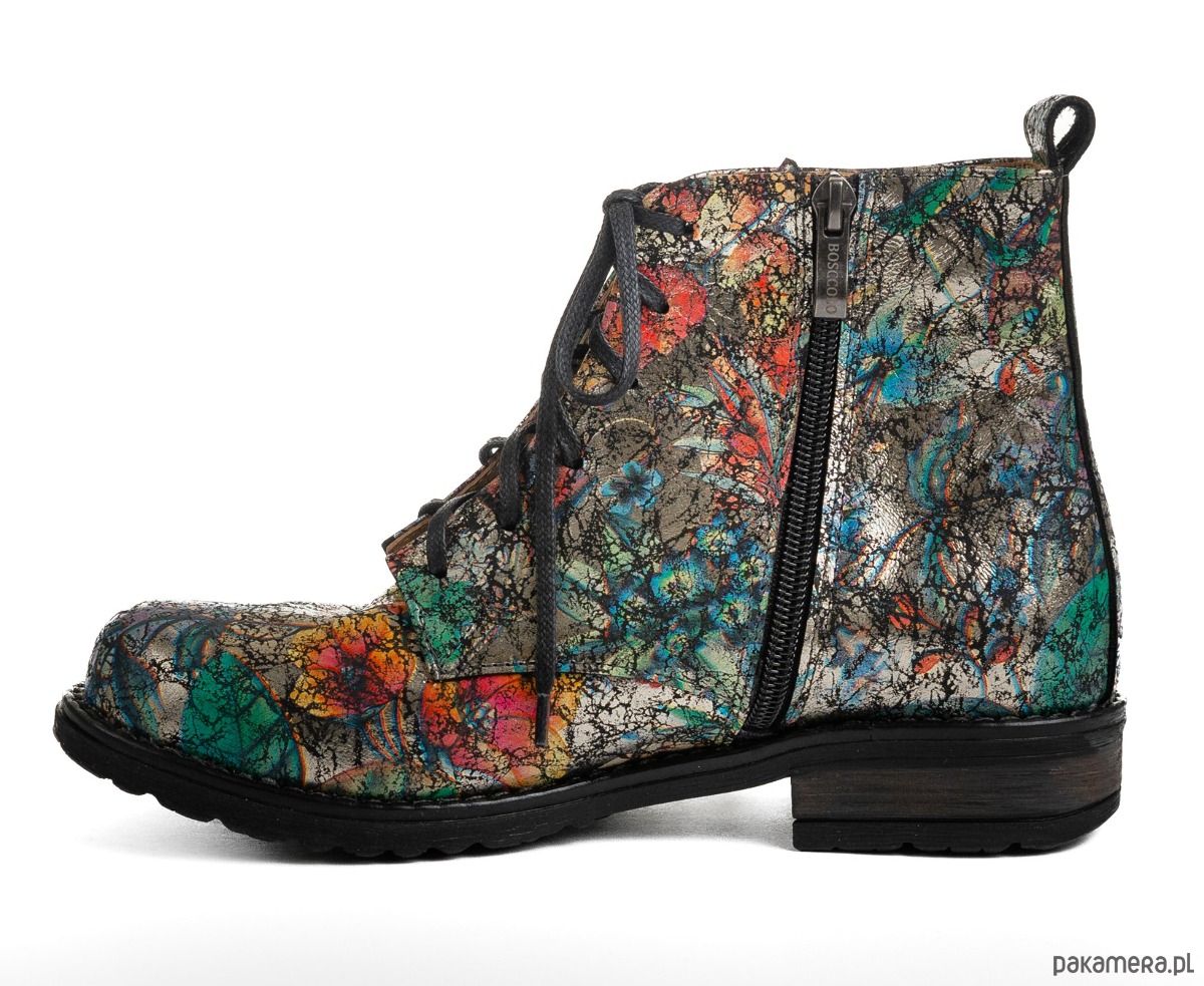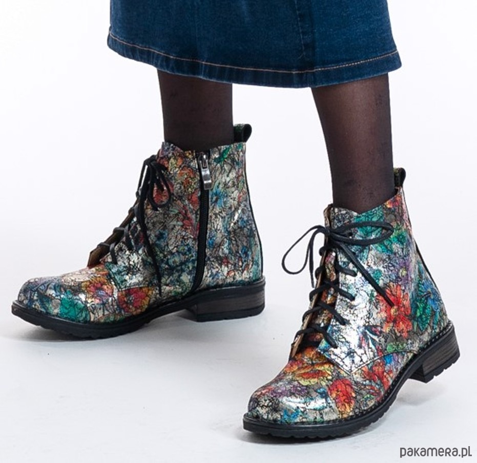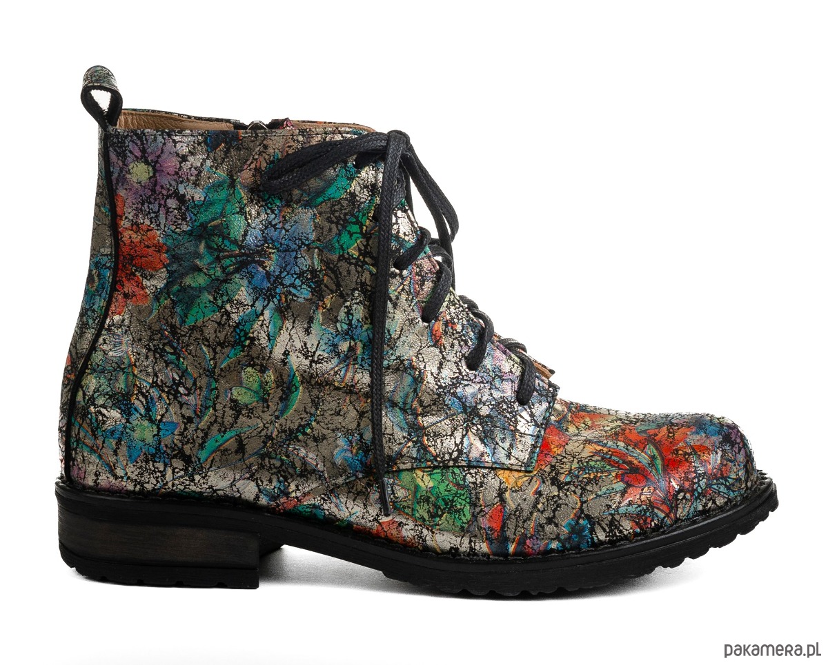 Botki skórzane - wzór w kolorowe kwiaty (7190)