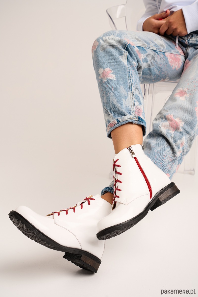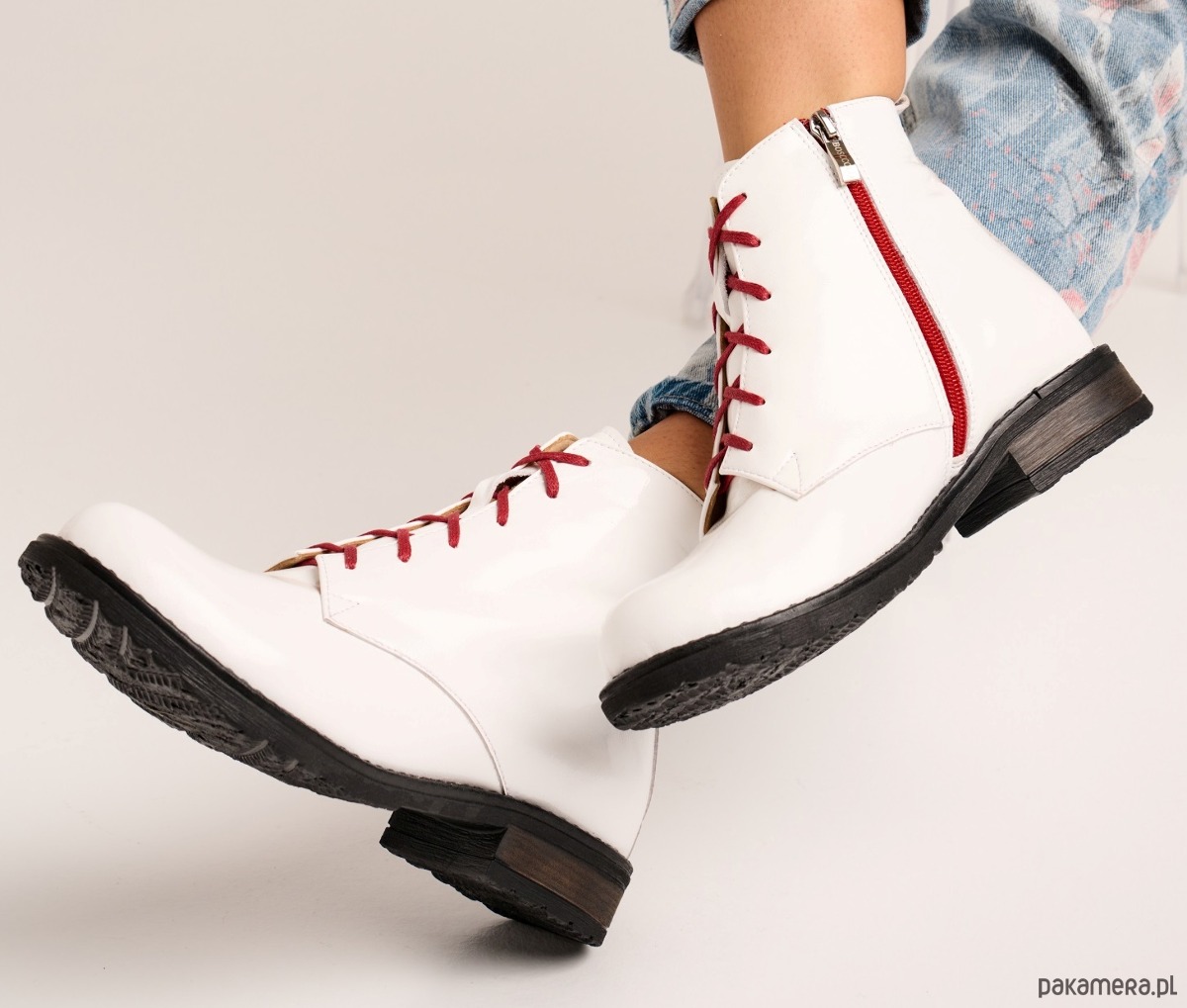 Eleganckie botki skórzane z naturalnej skóry lakierowanej .