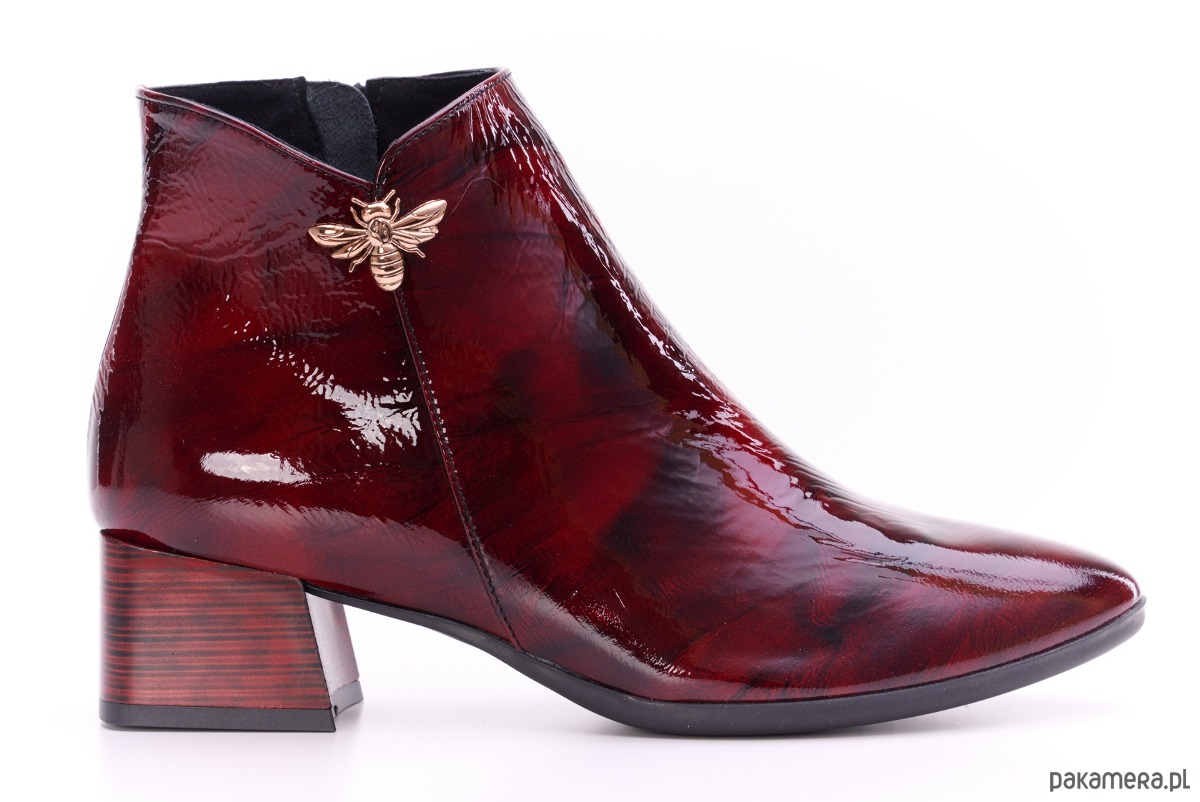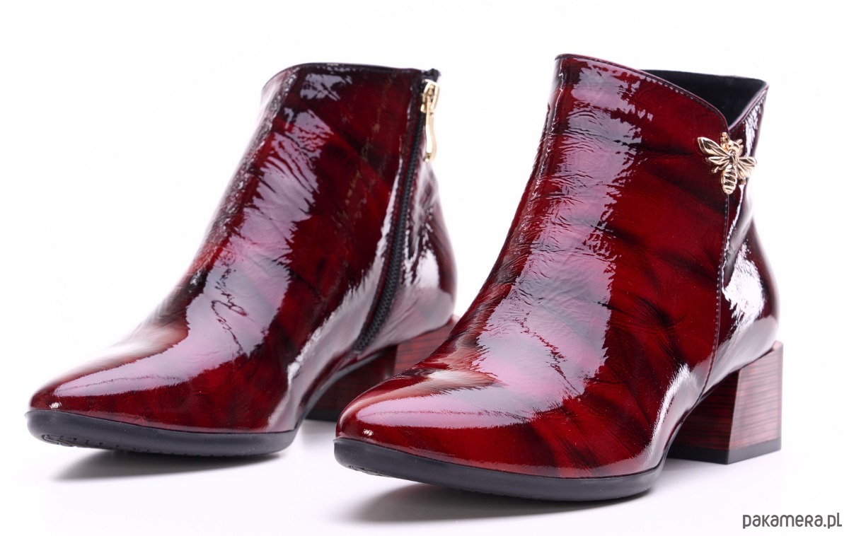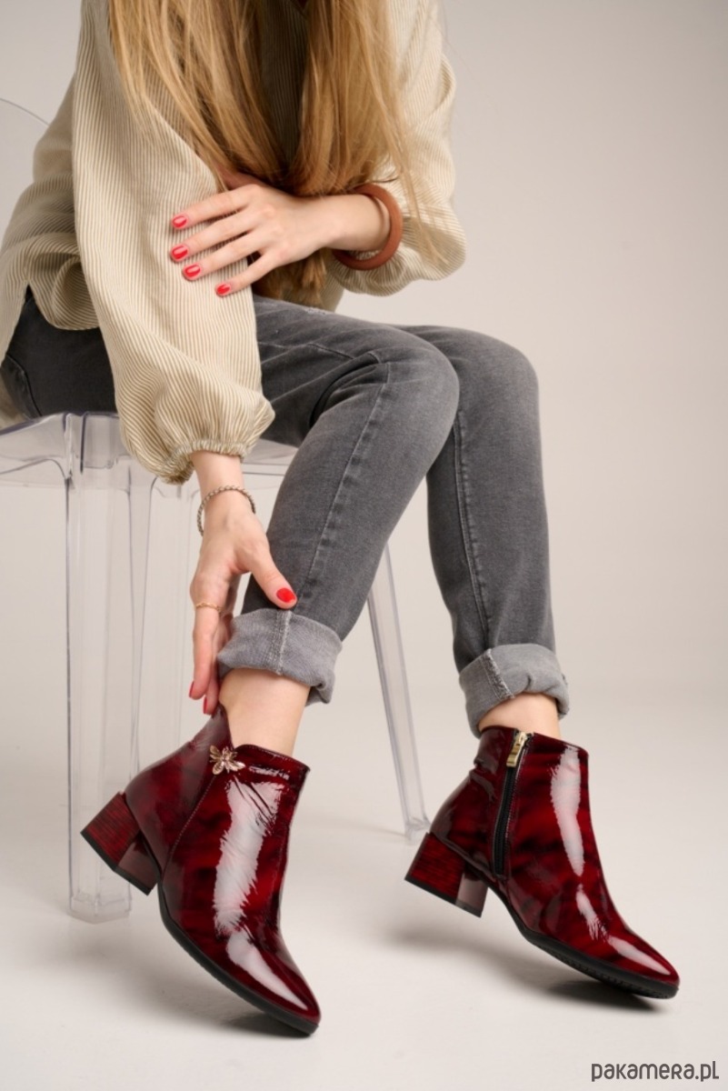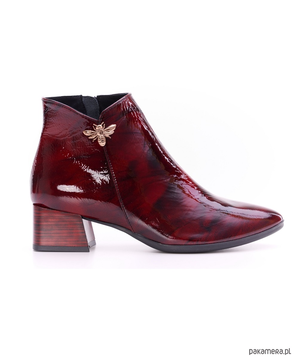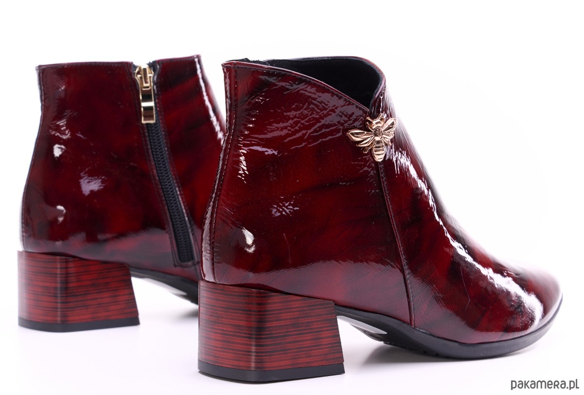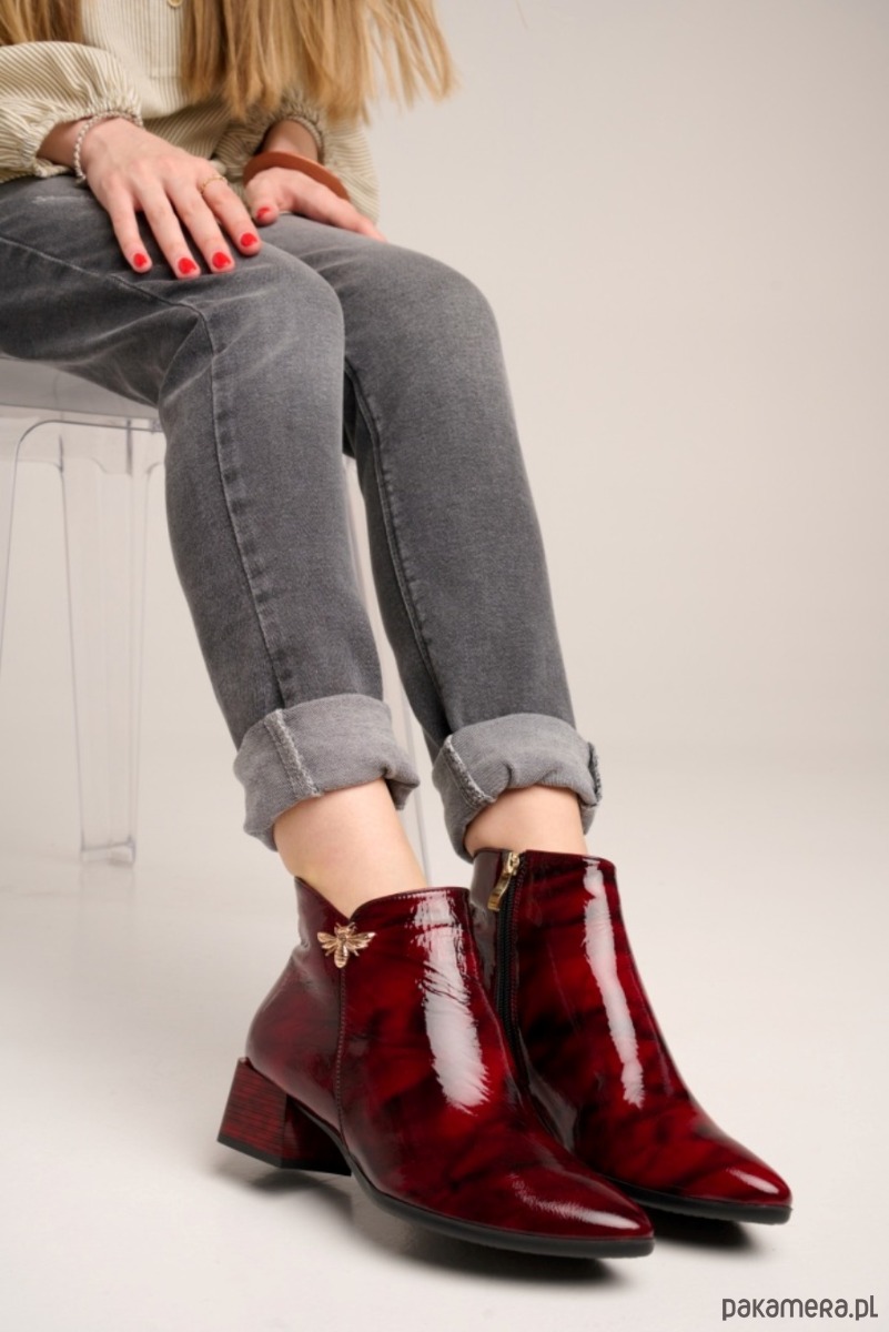 Nowoczesne botki damskie wykonane ze skóry naturalnej, lakierowanej, zmięty wygląd .