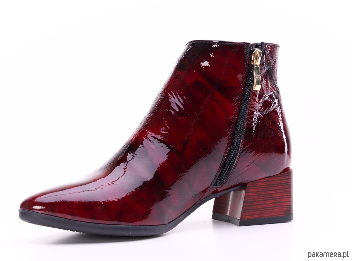 Botki skórzane z lakierowanej skóry, zmięty wygląd (6517)