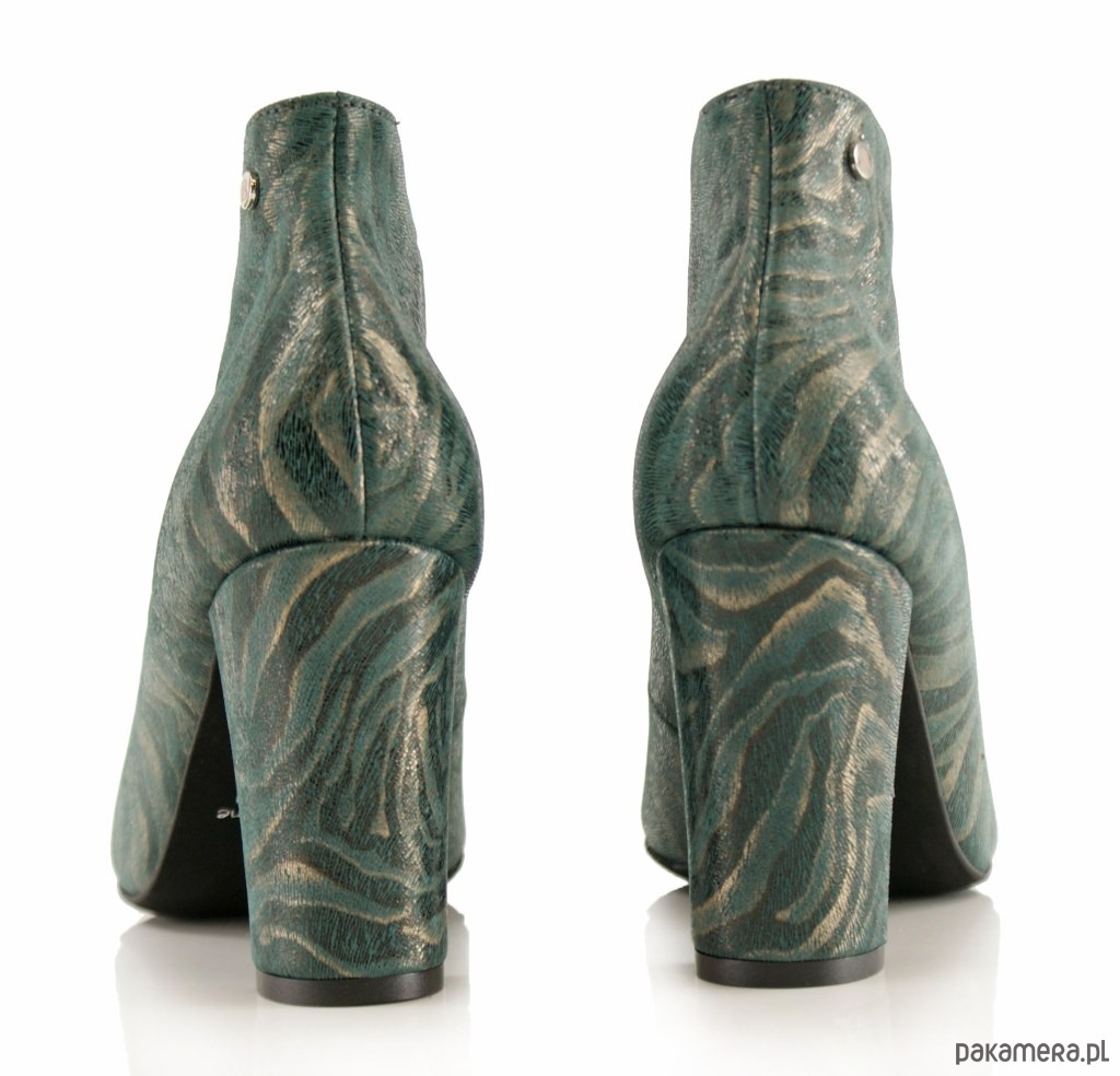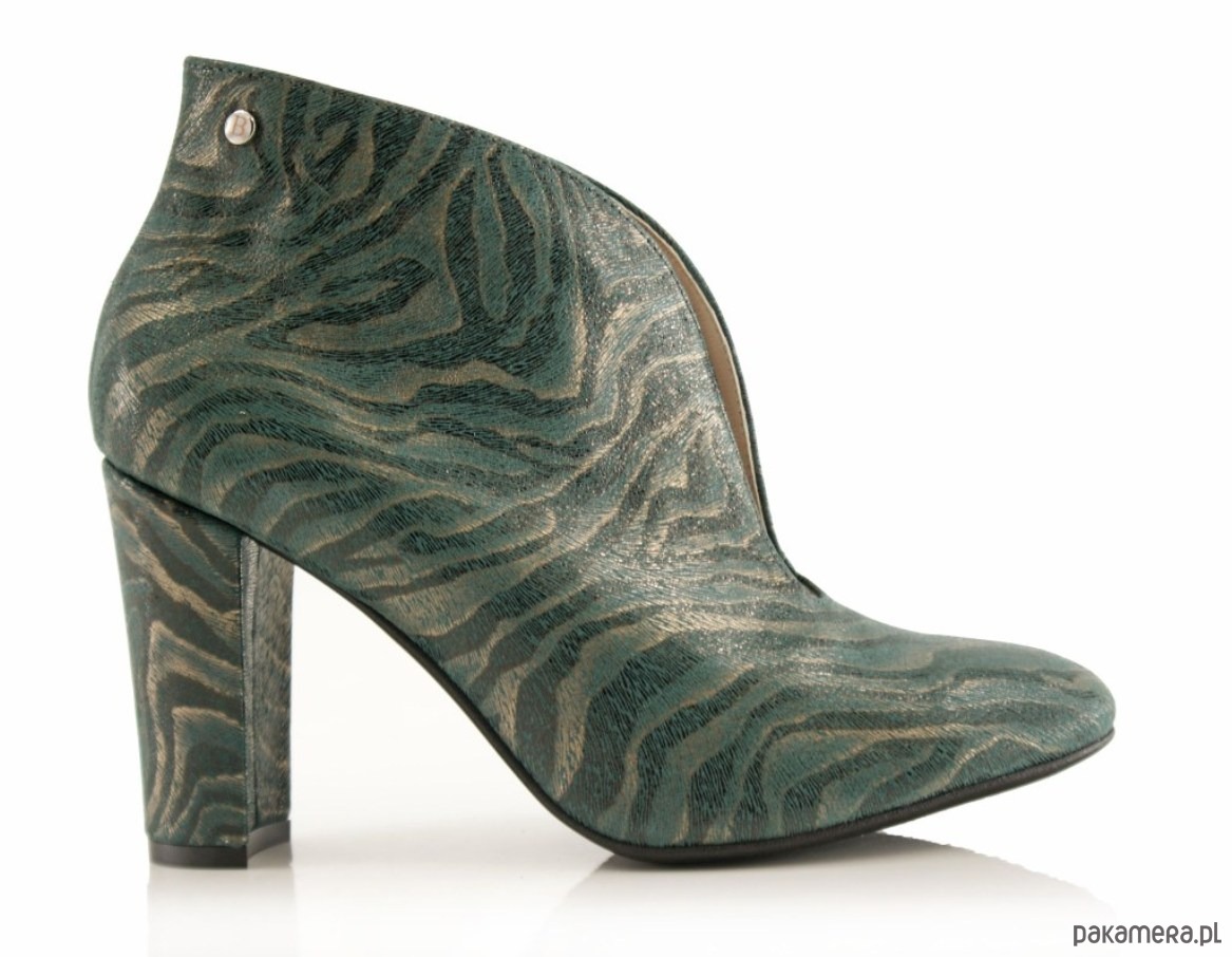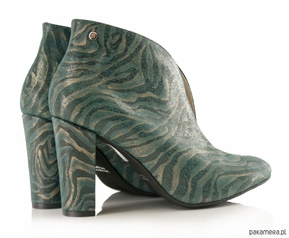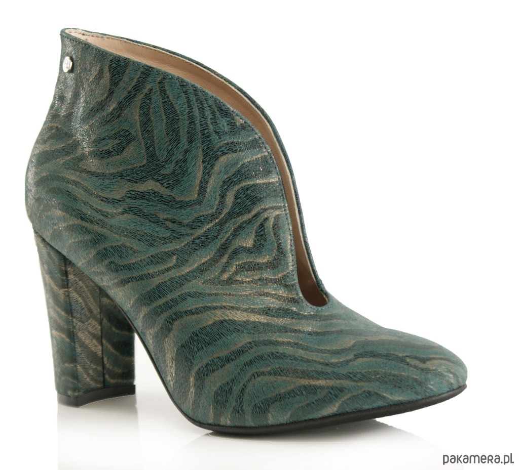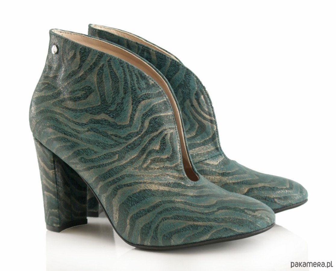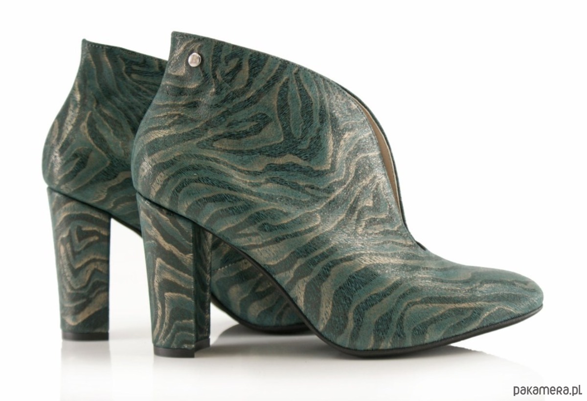 Skórzane botki na obcasie ze skóry naturalnej, z wzorem zebry, wsuwane.