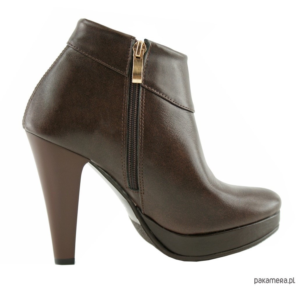 Skórzane botki na obacie ze skóry naturalnej, na suwak, podeszwa na wyższej podsuwce.