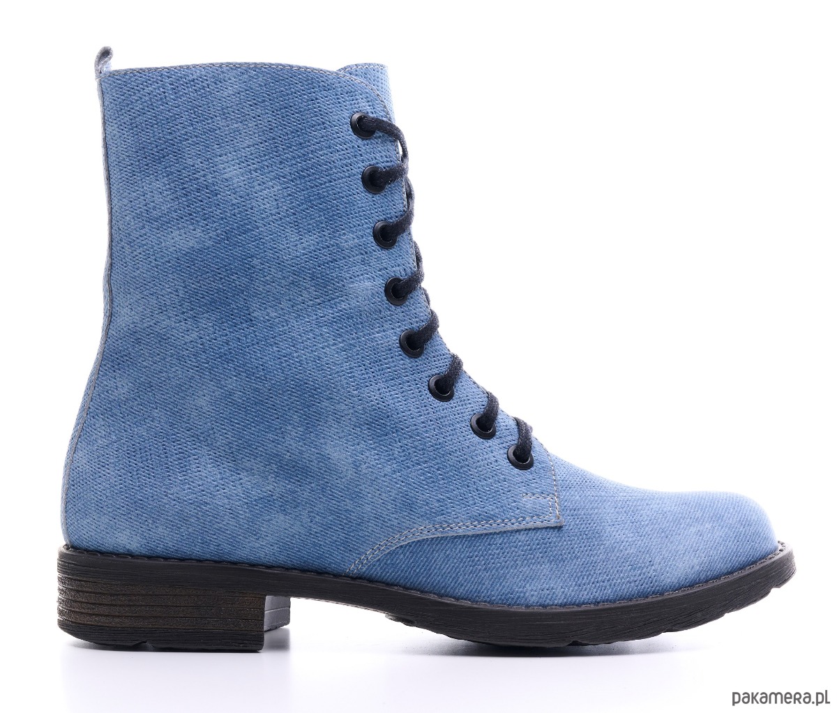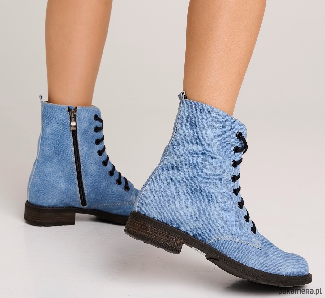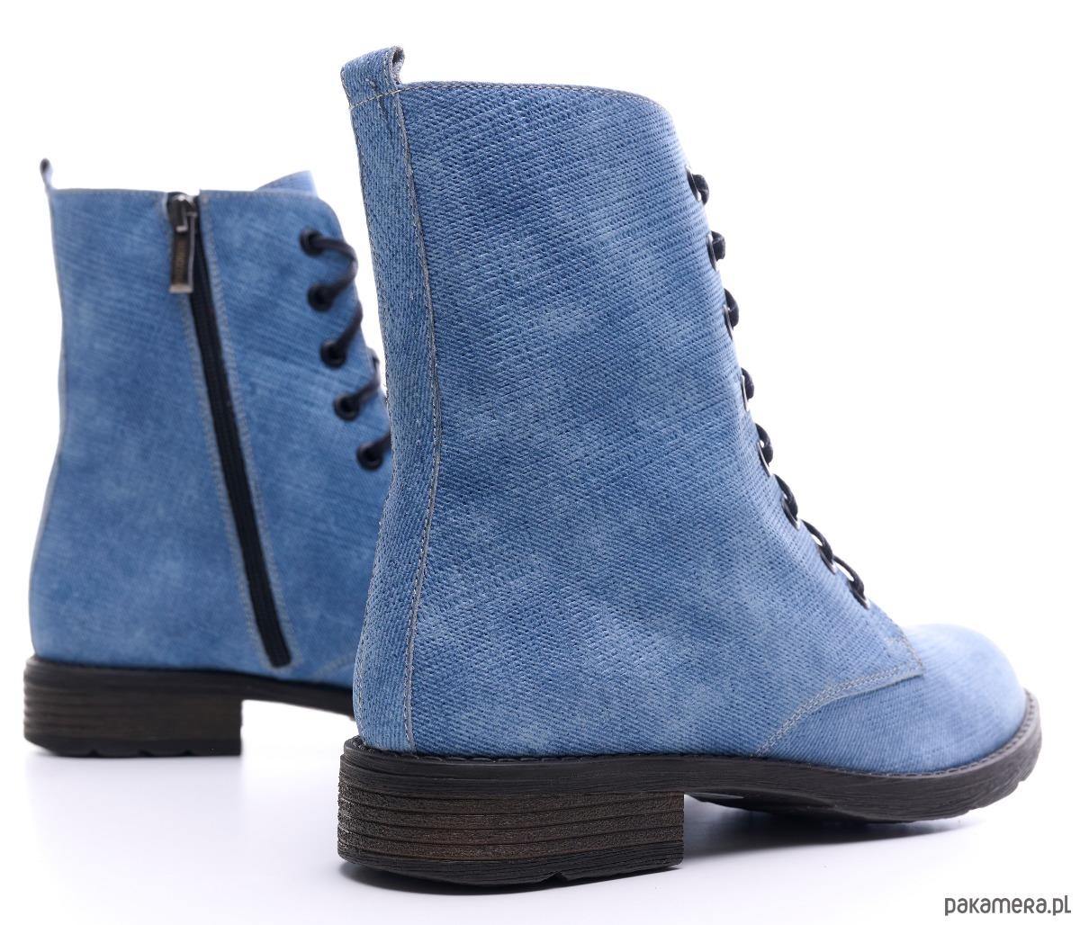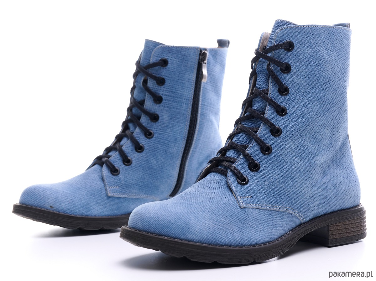 Eleganckie botki skórzane z naturalnej skóry, faktura przypominająca jeans.