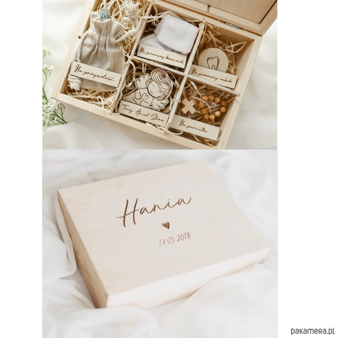 Drewniany box to wyjątkowy prezent dla Maluszka na Chrzest Święty.