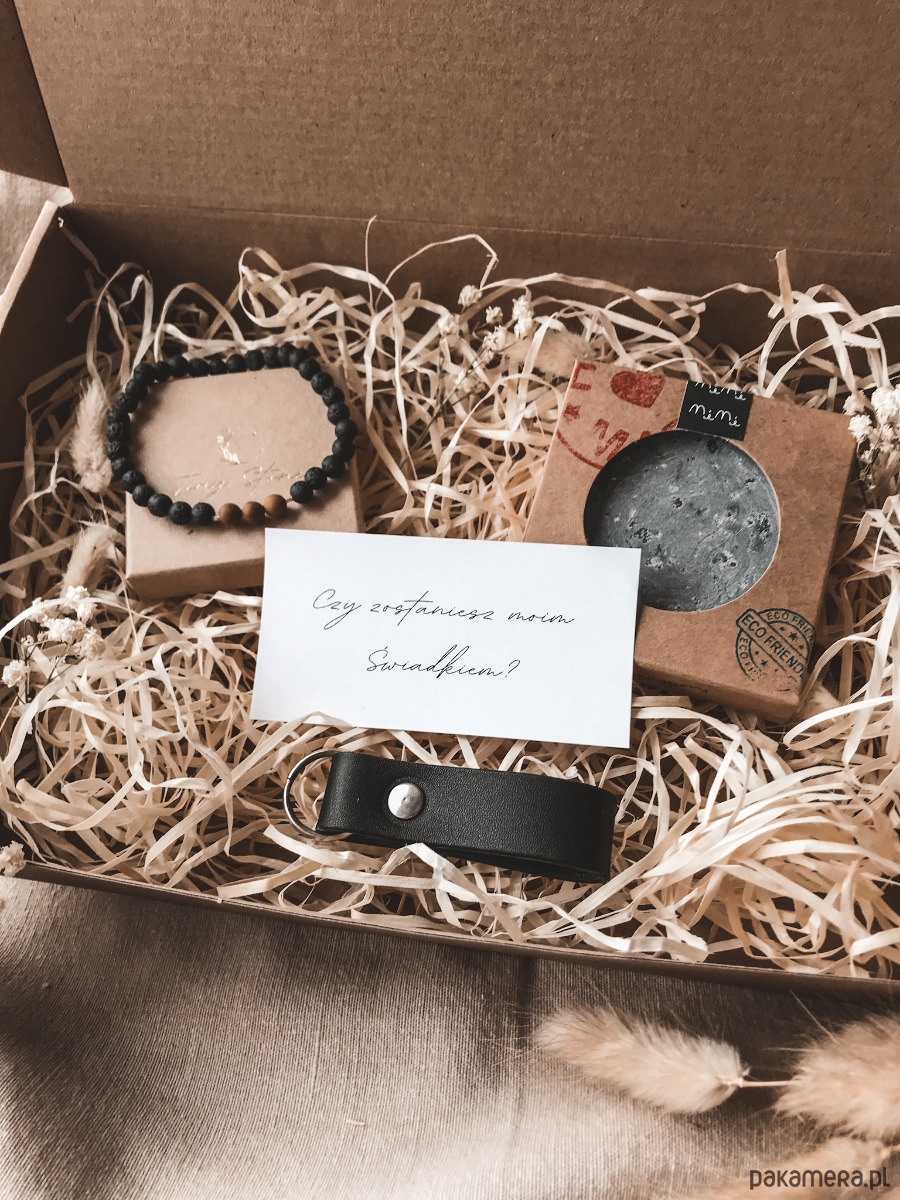 Box prezentowy, dla świadka, podziękowanie dla rodziców, chrzestny