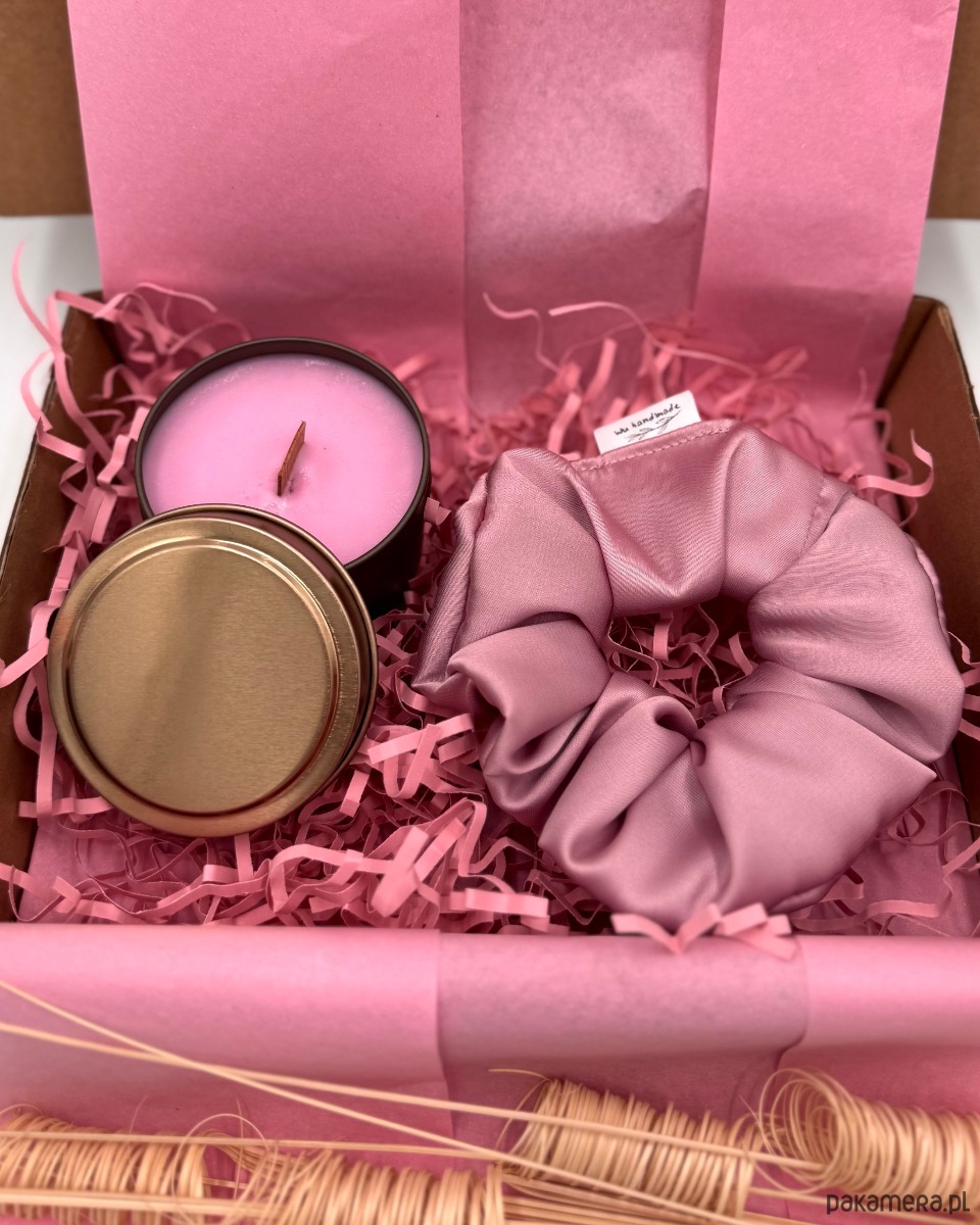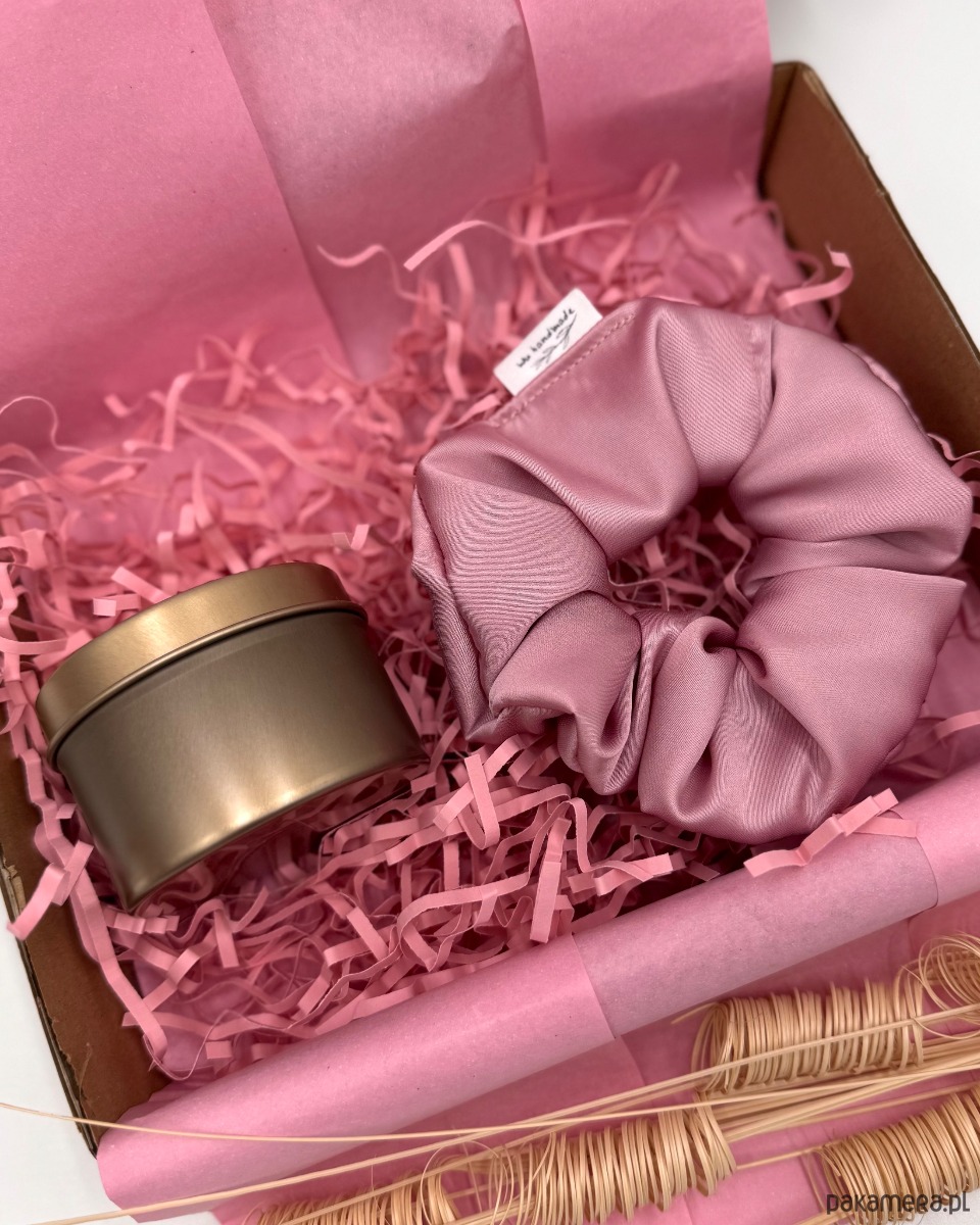 Całość zapakowana jest w elegancki box prezentowy z subtelnym różowym wypełnieniem.