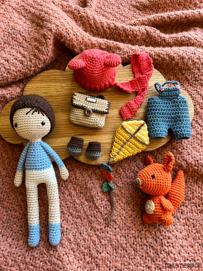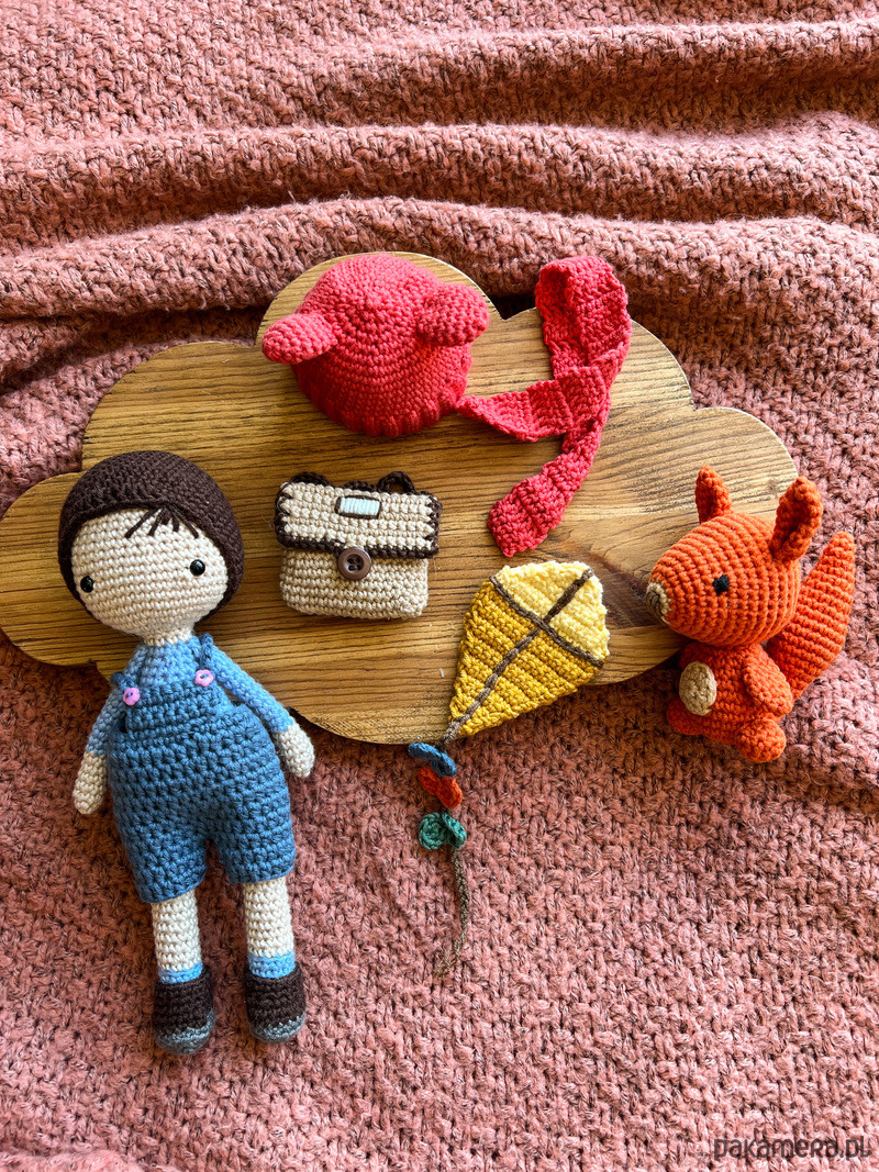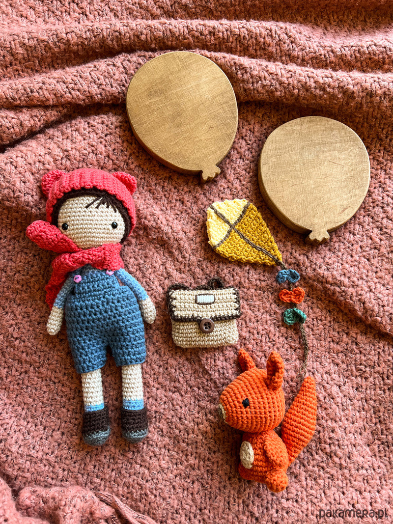 -Wymiary : długość lali - ok.24cm, wysokość wiewiórki - 11cm ,latawiec- 18cm.
