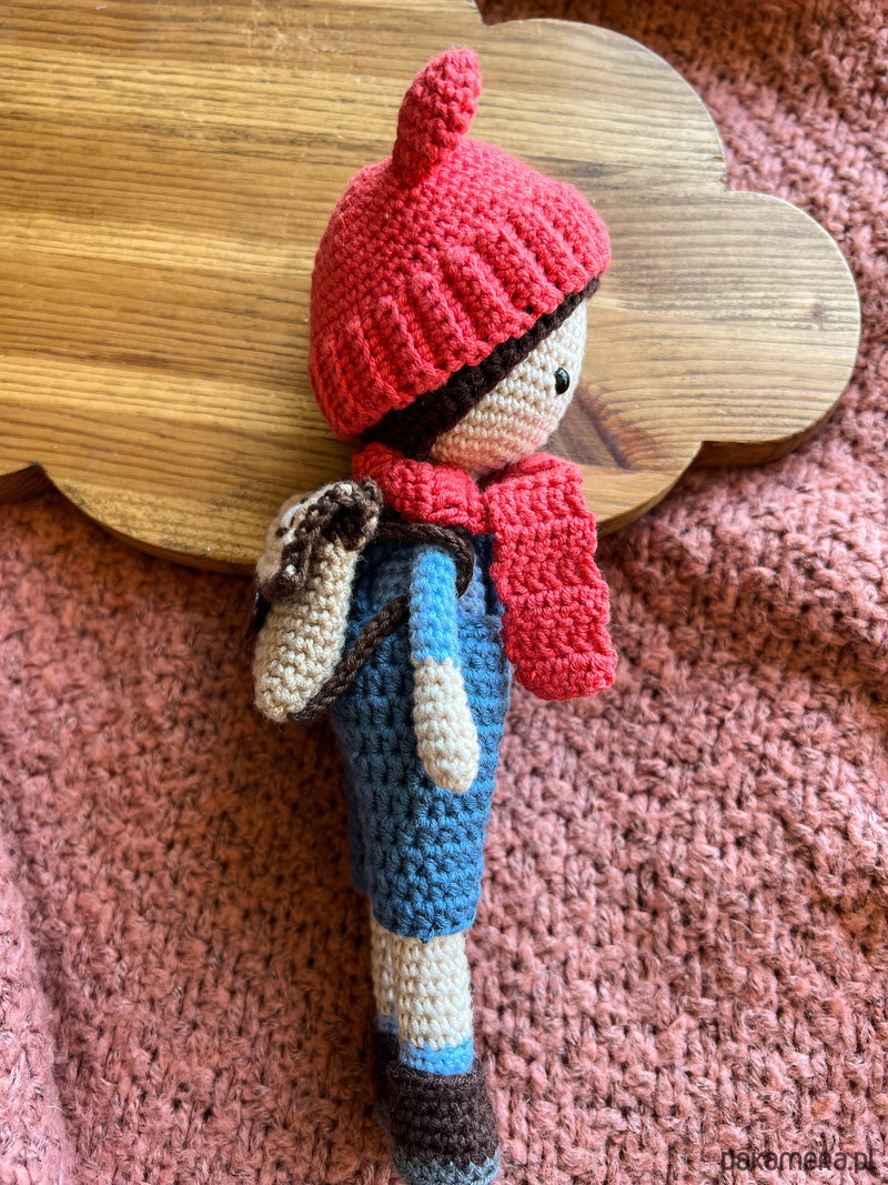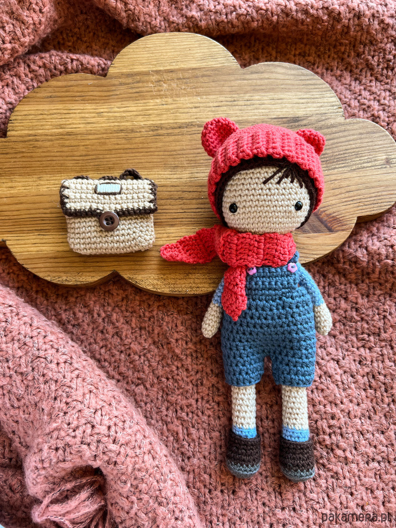 Przedstawiam radośnie chłopczyka Louisa, który w jesiennym powiewie wiatru wybiera się z tornistrem do szkoły/ plecaczkiem do przedszkola lub na wycieczkę.