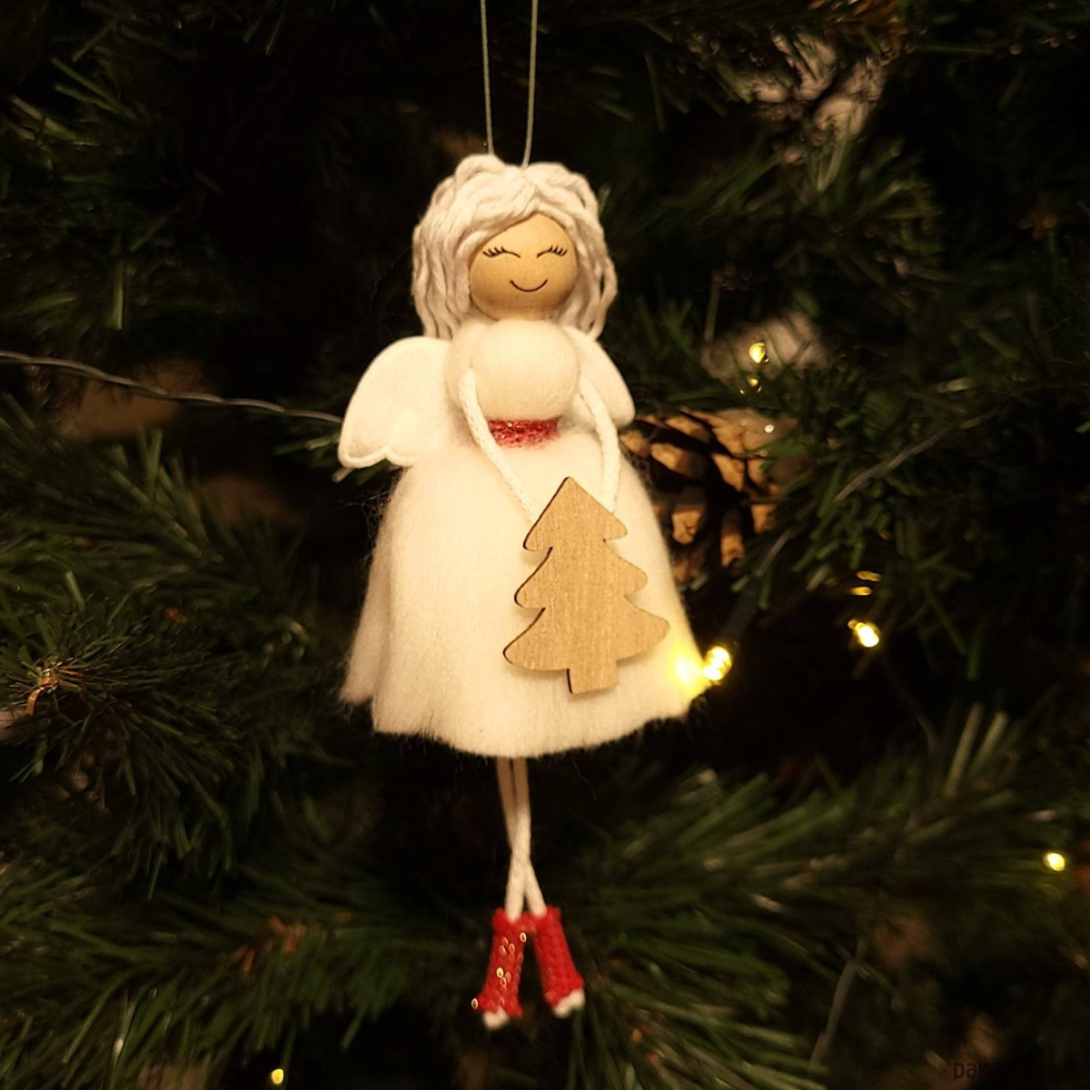 Aniołek "Puchatek" uwielbia wdychać zapach choinki i obracać się wśród jej gałązek. Poza tym bardzo lubi też posiedzieć czasami na półce z książkami, albo zajrzeć do pokoju dziecka i przypilnować spokojnego snu.