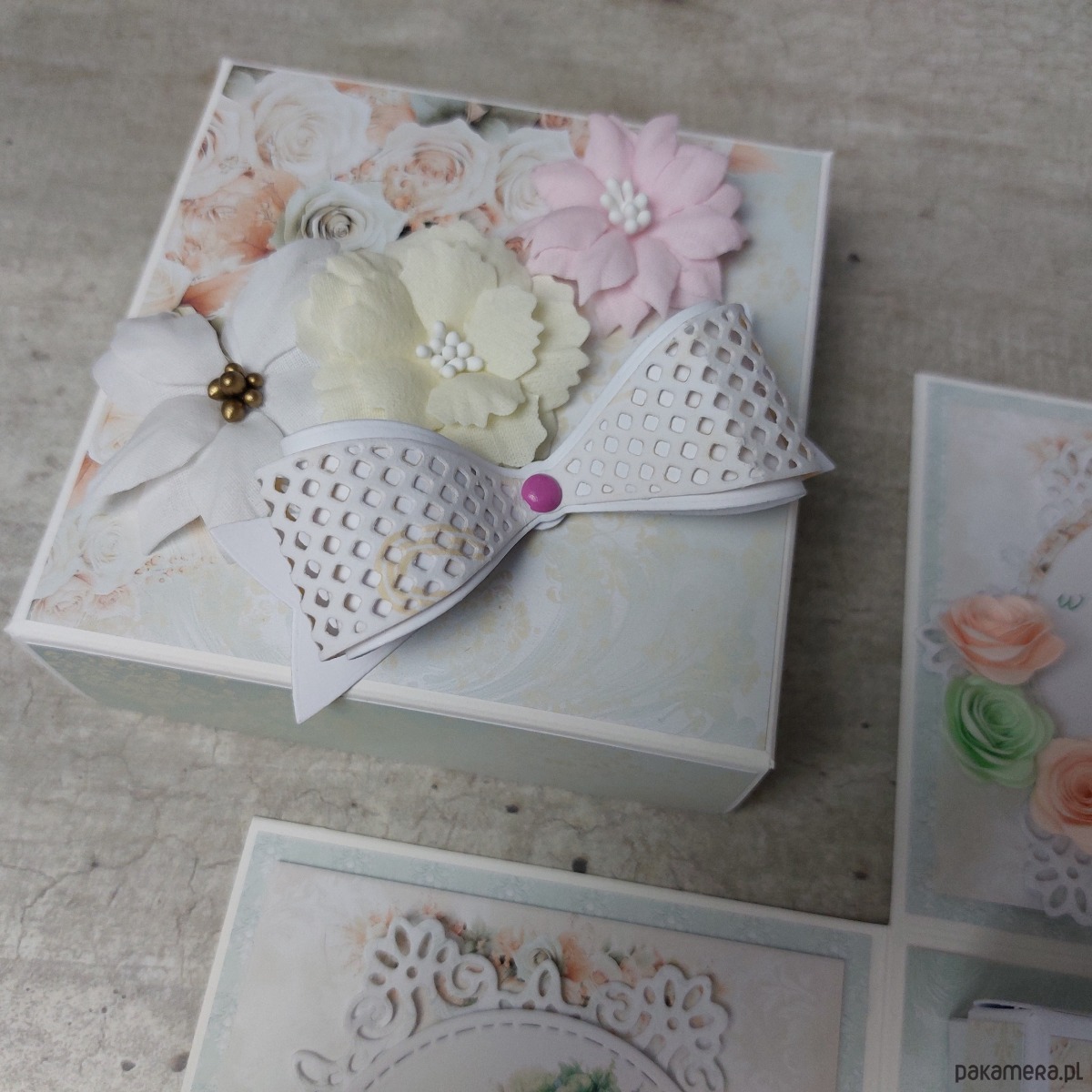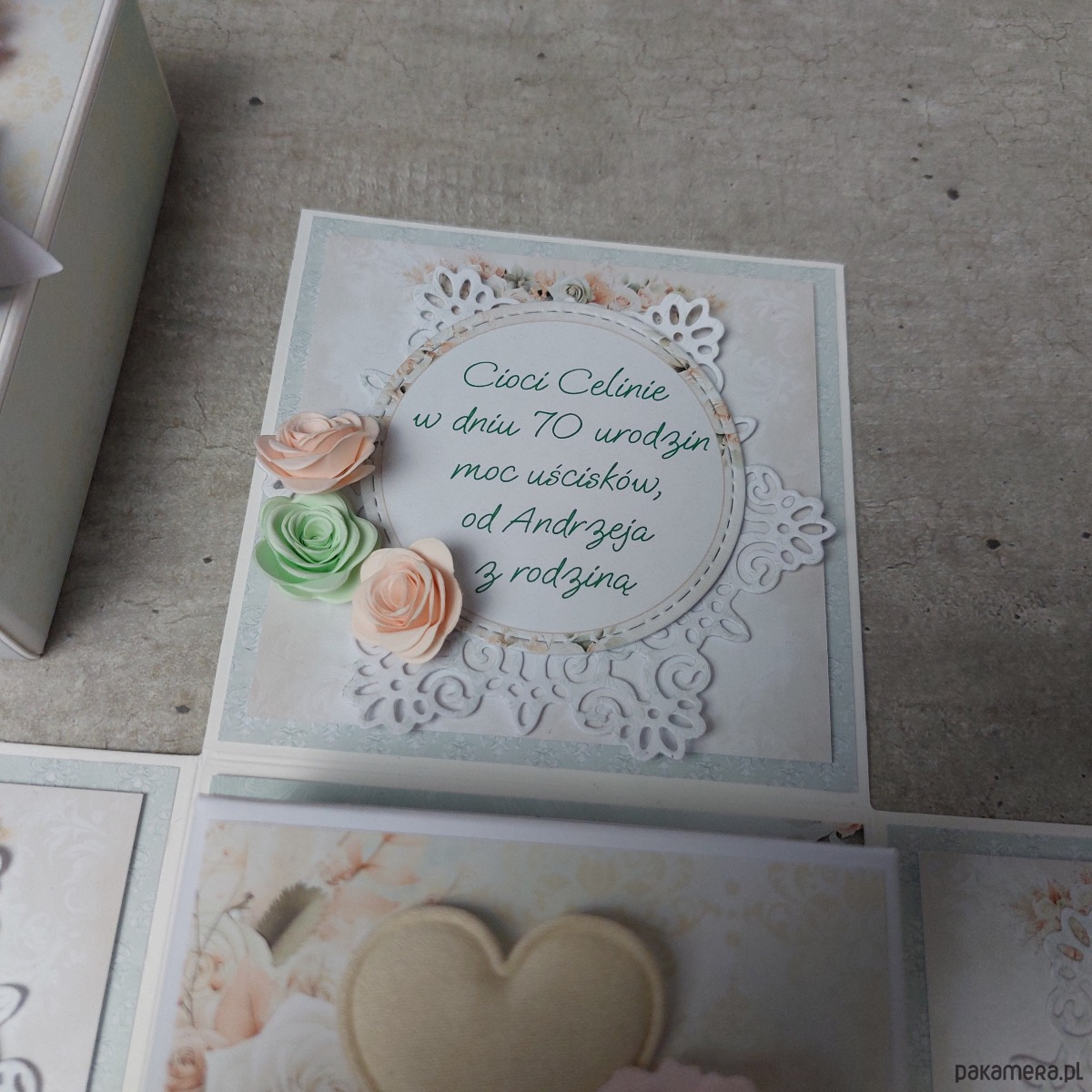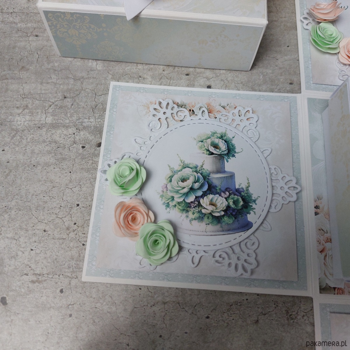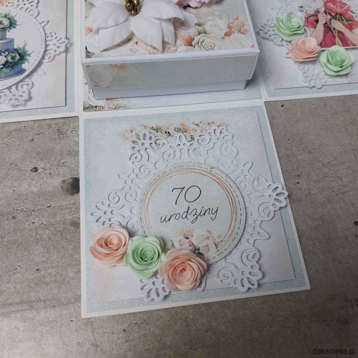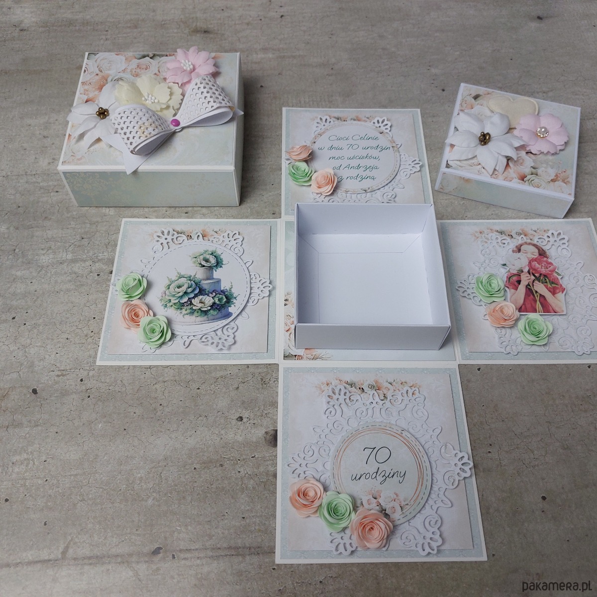 Box na urodziny z pudełkiem na środku, wykonany na zamówienie.