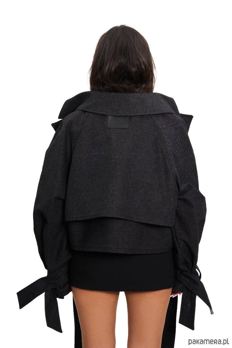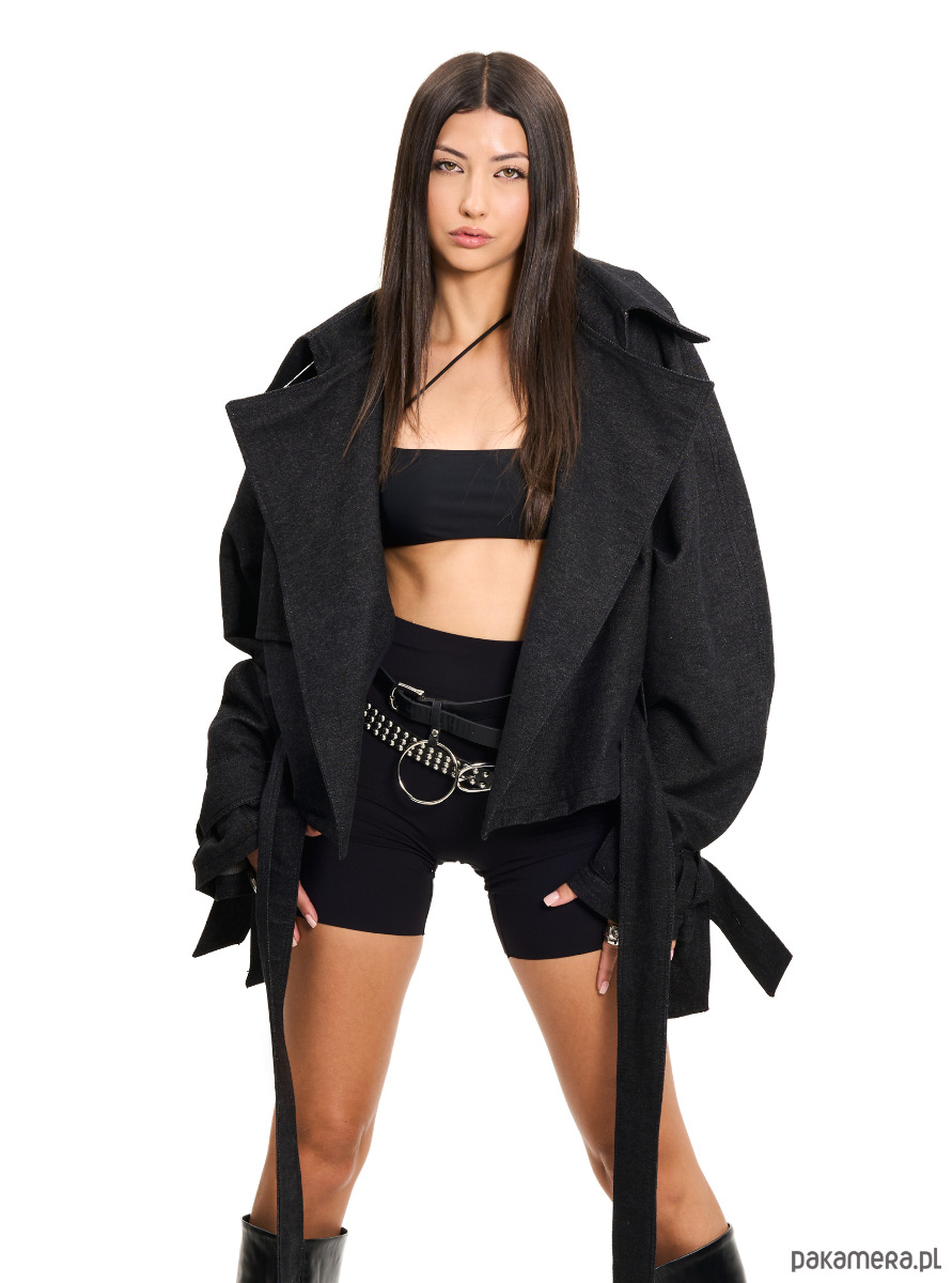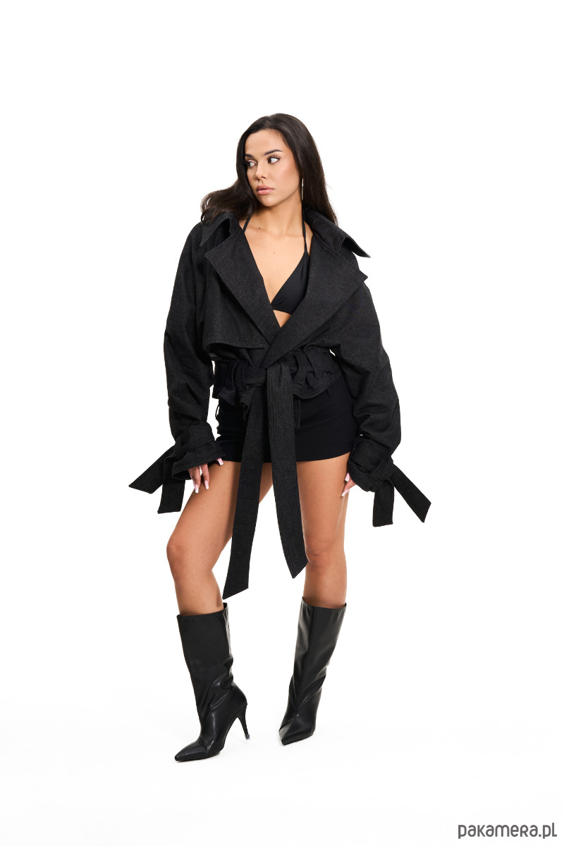 Boxie Crop Trencz to dziecko naszego klasyka - trencza maxi. Wykonana z najlepszej jakości denimu w kolorze washed black, zawęża dystans do trendów: skrócona, pudełkowa sylwetka i mocne detale tworzące hybrydę trencza, marynarki i ramoneski.