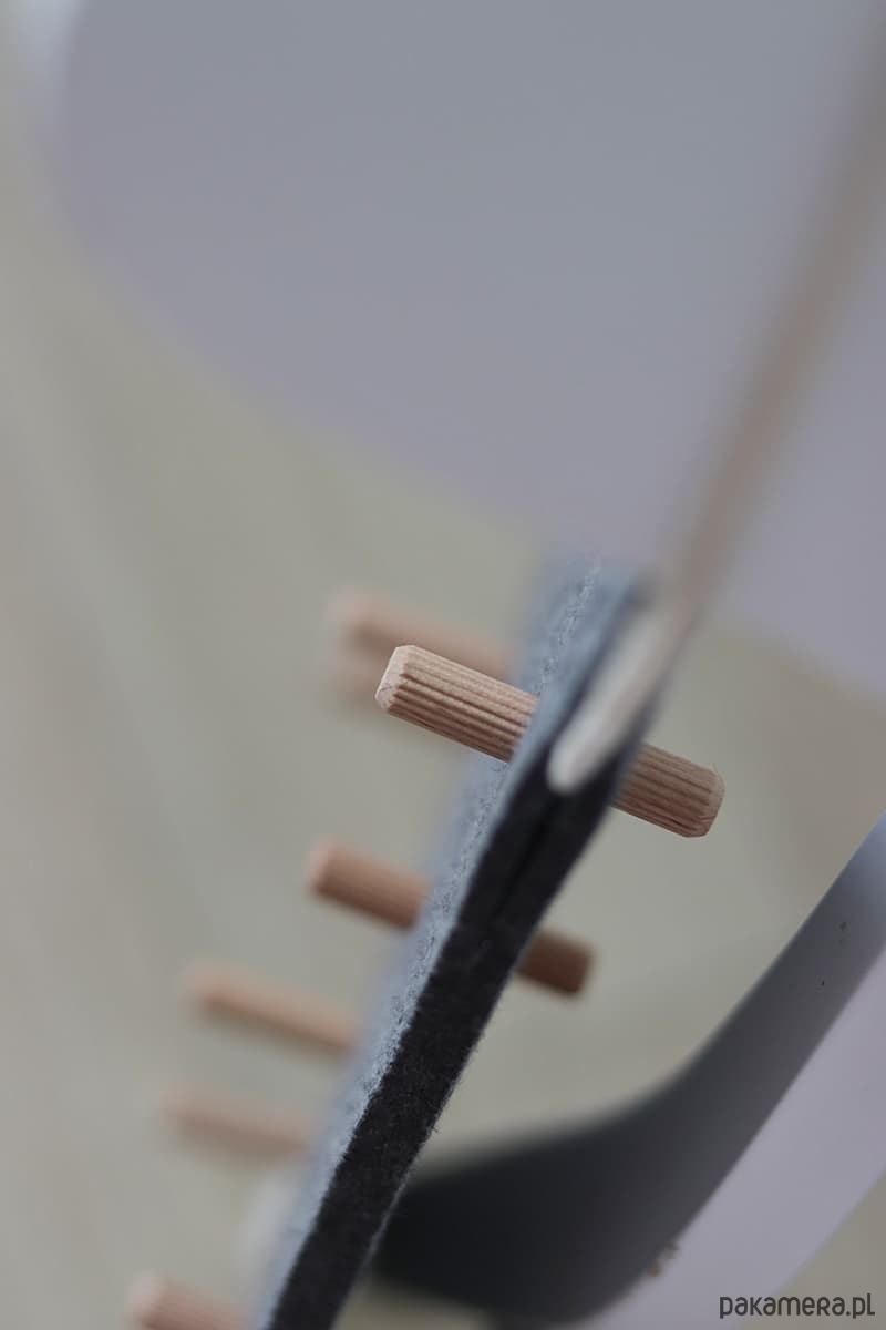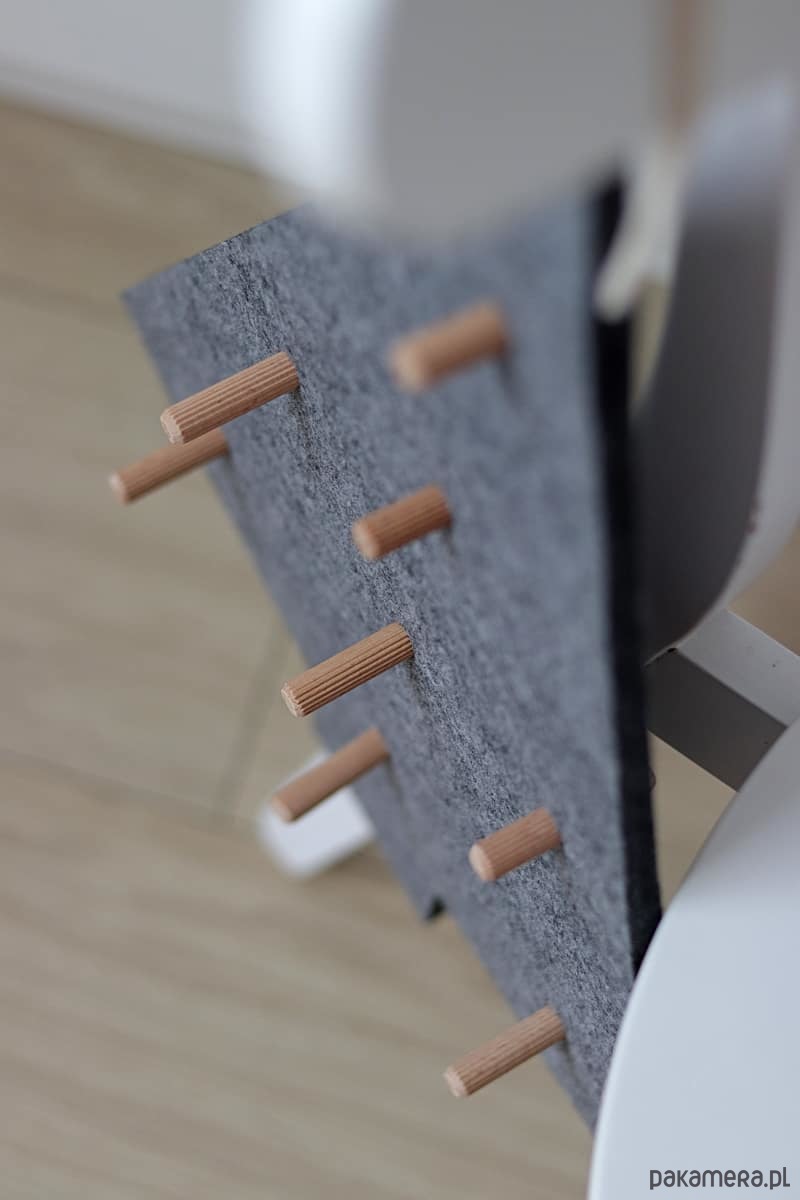 - materiał: szary filc 8mm (dwie warstwy) + drewniane kołki