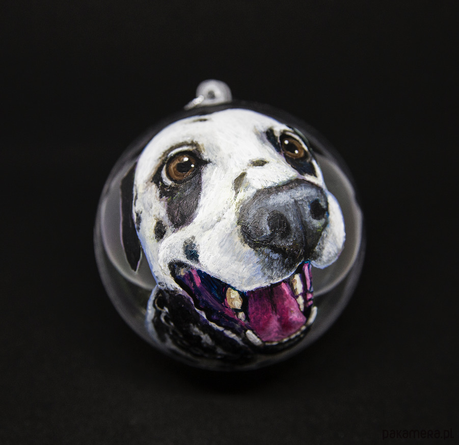 Ręcznie malowane bombki akrylowe, średnica 8cm, trwałymi farbami , zabezpieczone lakierem. Dekoracja wykonana na podstawie wybranego motywu przez klienta (np. portret pupila ze zdjęcia)