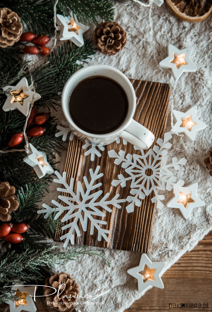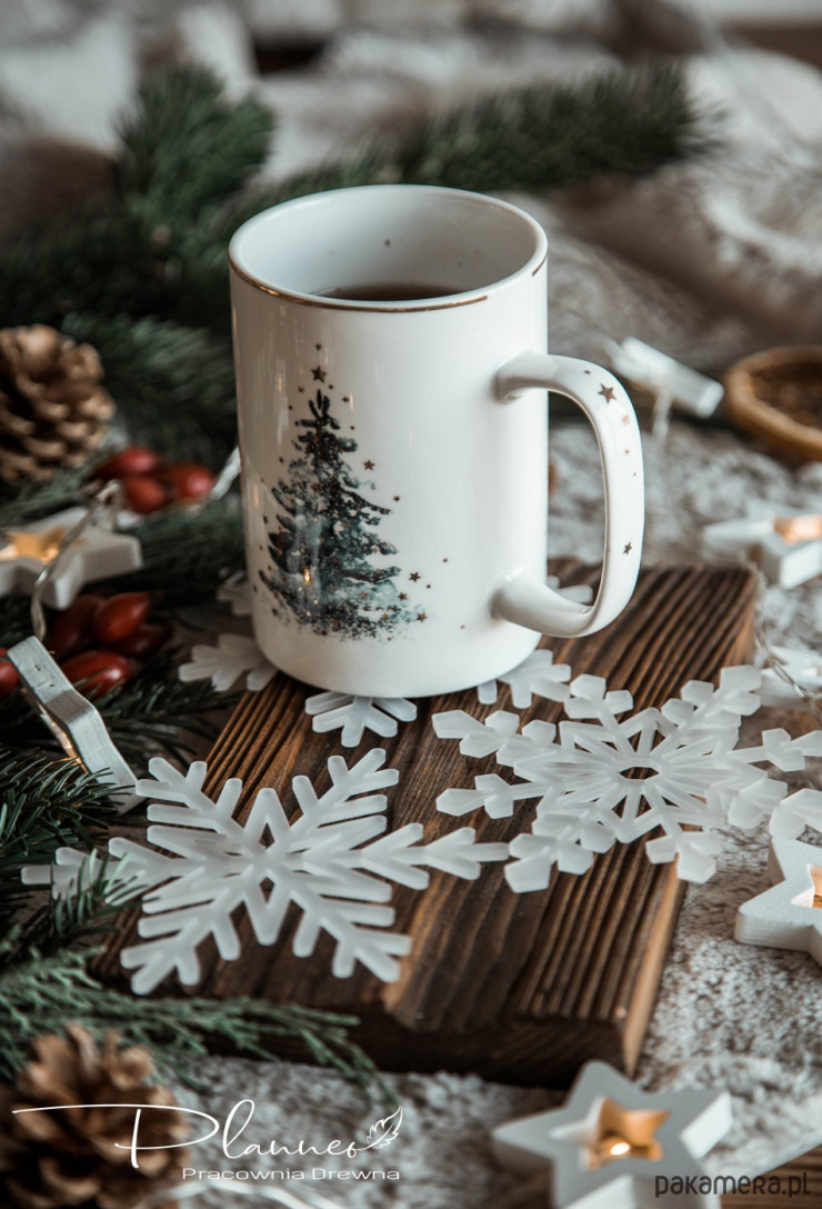 Wyjątkowa Bożonarodzeniowa podkładka pod kubek - wykonana z wysokiej jakości sklejki oszronionej o grubości 3 mm idealnie ozdobi każde rodzinne spotkanie! Śnieżynkę można również wykorzystać do dekoracji choinki lub innych stroików.