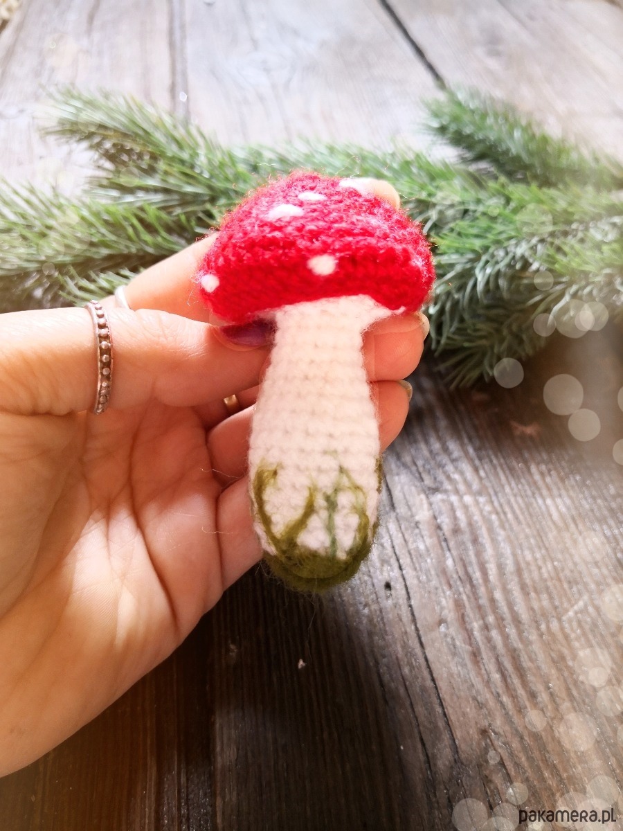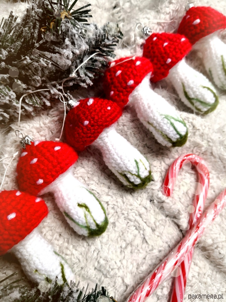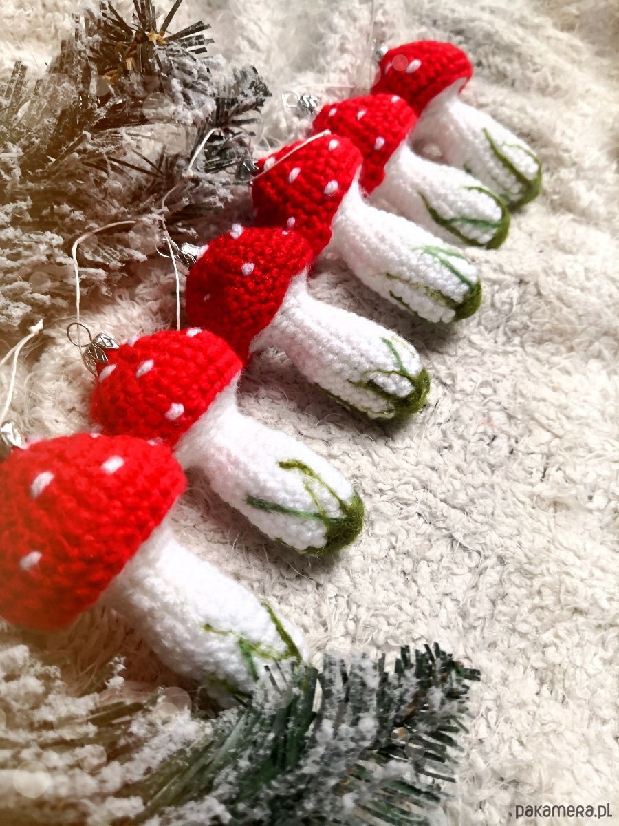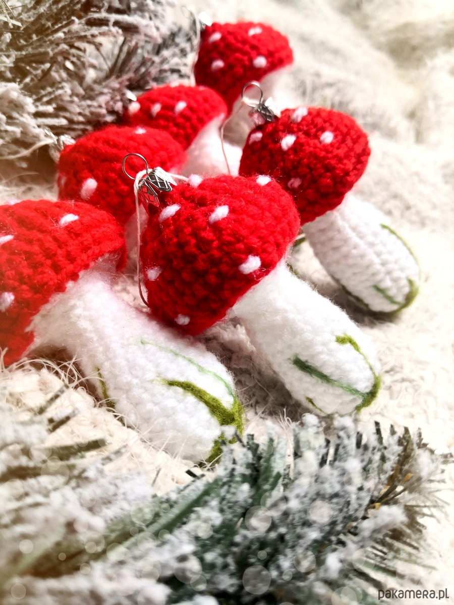 Muchomorki grzybki ozdoby choinkowe na szydełku