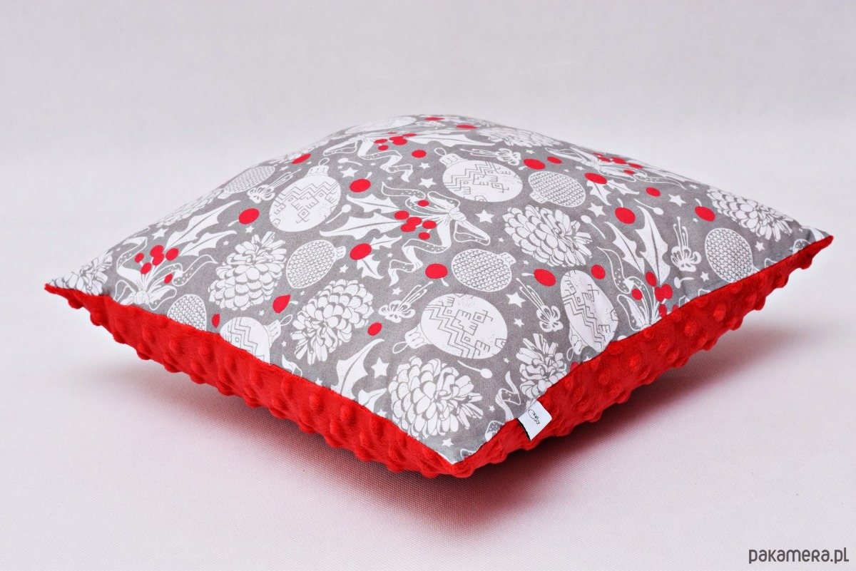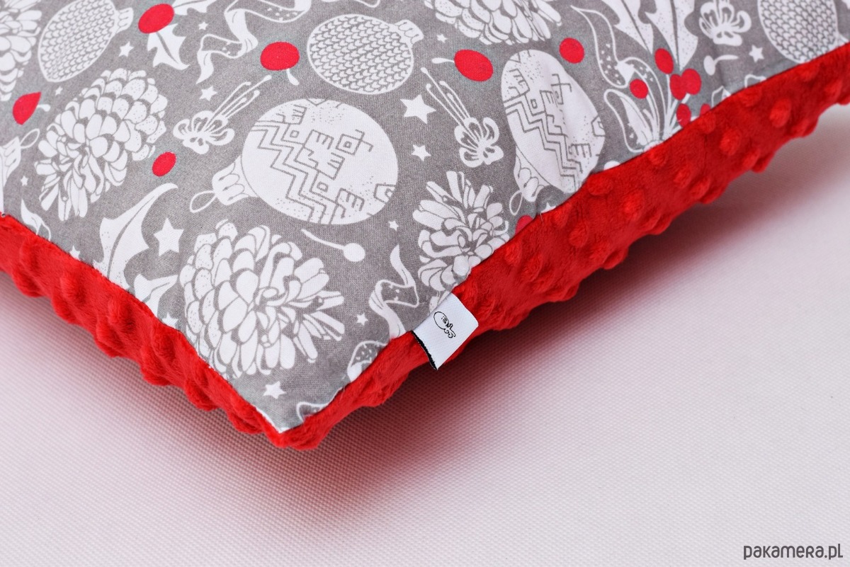 Stylowa ozdobna poduszka uszyta z bawełny 100% i z mięciutkiego gładkiego polaru minky w kolorze czerwonym.